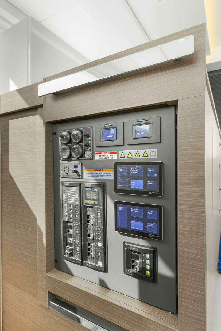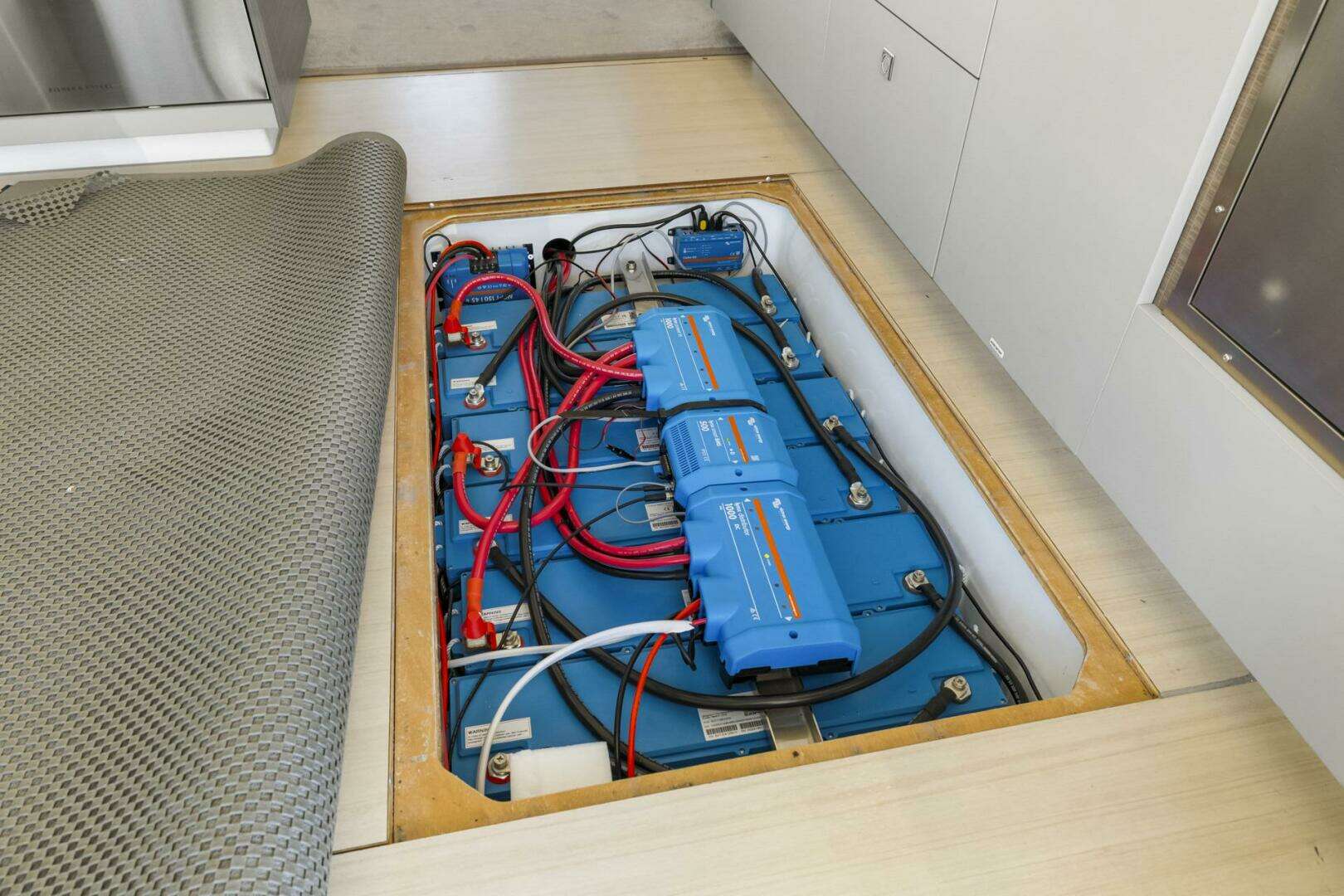 - Massive 30kWh Victron 48V lithium house bank capable of running all air conditioning systems and onboard equipment entirely on battery power