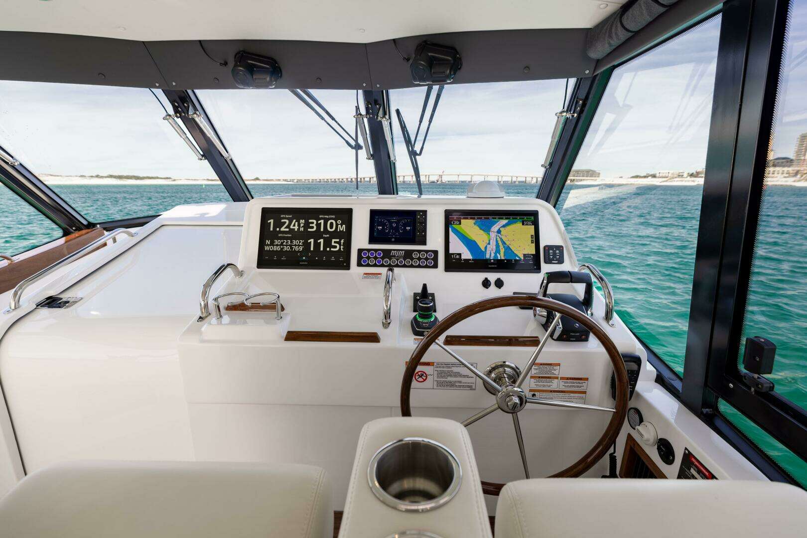 2025 MJM 4 Dealer Demo- Experience the 2025 MJM 4®—a modern expression of refined yachting that blends timeless Carolina design with contemporary luxury and versatility. Every detail is crafted for comfort and connection, from the climate-controlled pilothouse to the spacious open decks that invite conversation, relaxation, and fun in any weather. With four distinct social zones, elegant overnight accommodations, and quiet, fuel-efficient performance that exceeds 50 mph, the MJM 4® transforms every day on the water into an extraordinary escape. Delivered with Factory Warranty on the boat and engines, and can be delivered immediately to enjoy time on the water today. Ask about our Extended Service Coverage specials.