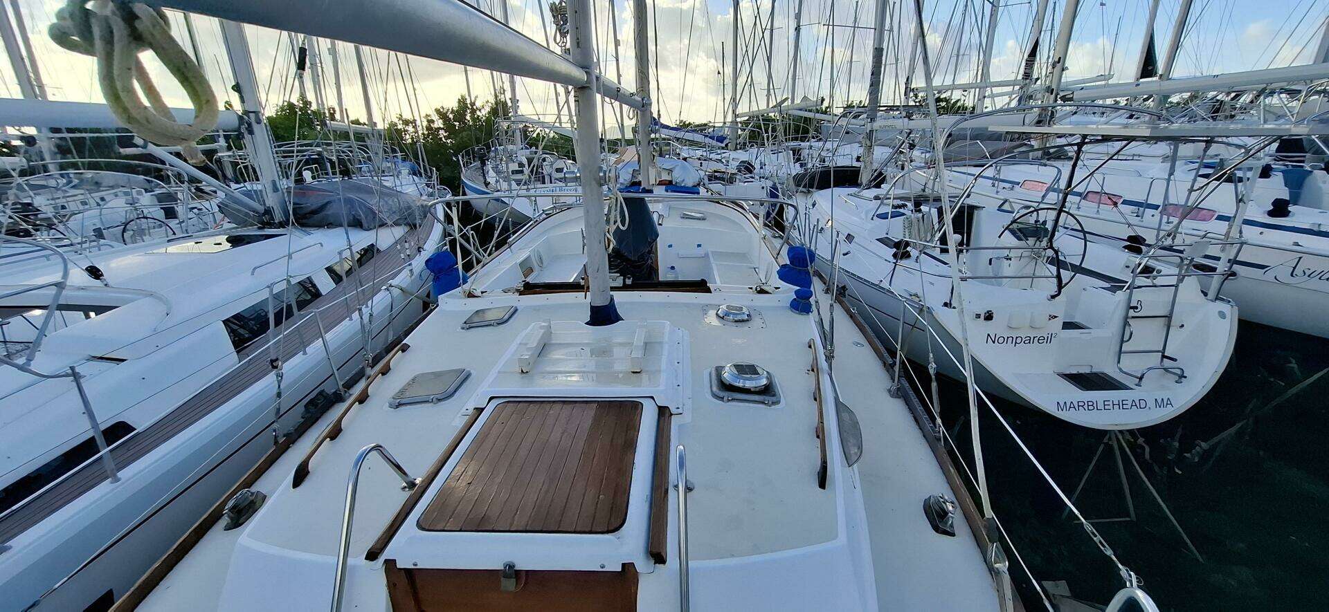 Longevity, a 1981 Morgan 462, has been exceptionally well maintained throughout her life and can be easily commissioned back into service as an active cruiser. The Morgan 462 is renowned as one of the strongest fiberglass sailing monohulls ever built. If you were to take a core sample from her hull, you’d find nearly two inches of solid fiberglass—no cheap core material, just pure strength. These boats were built to handle anything the ocean can deliver. Run aground, and you’ll likely worry more about the reef than the hull.