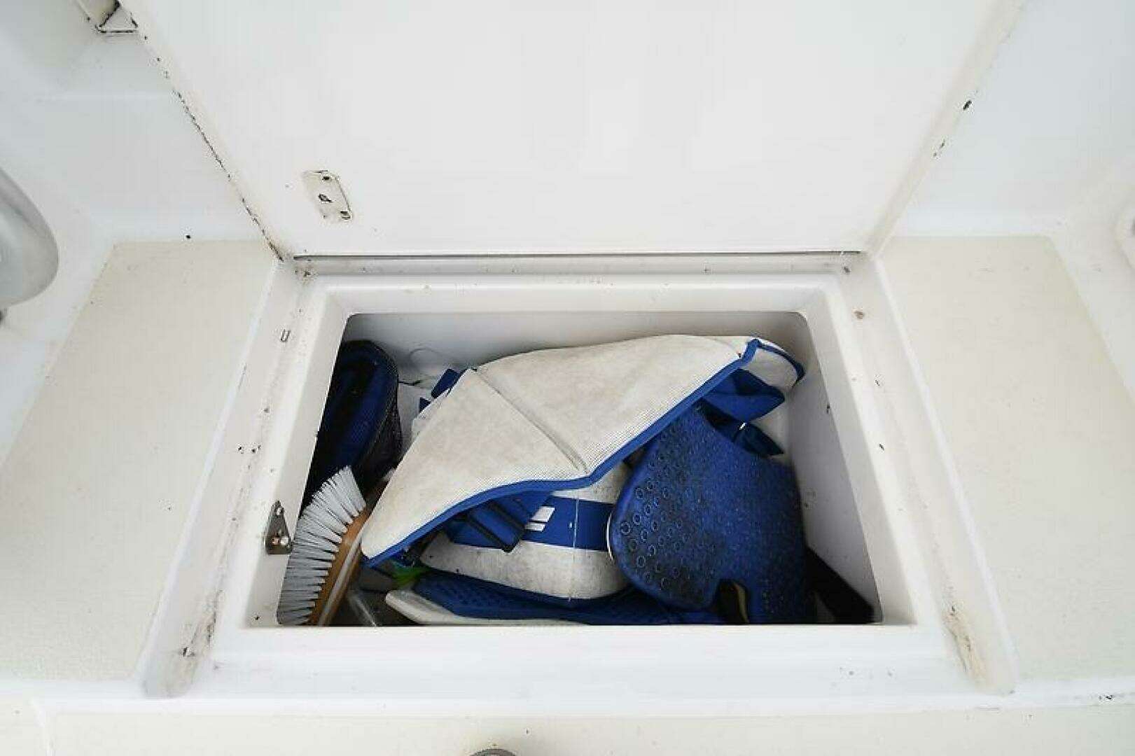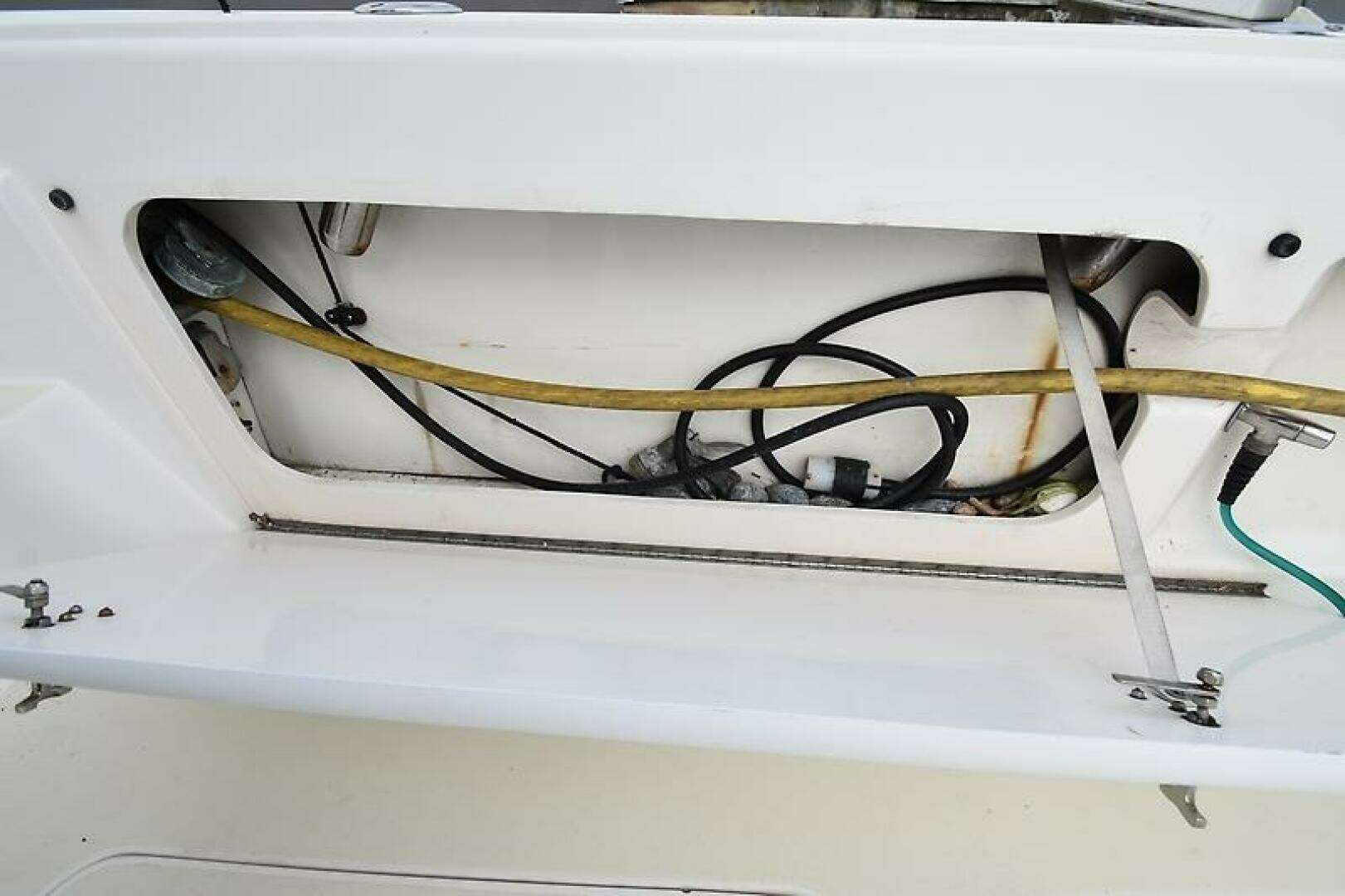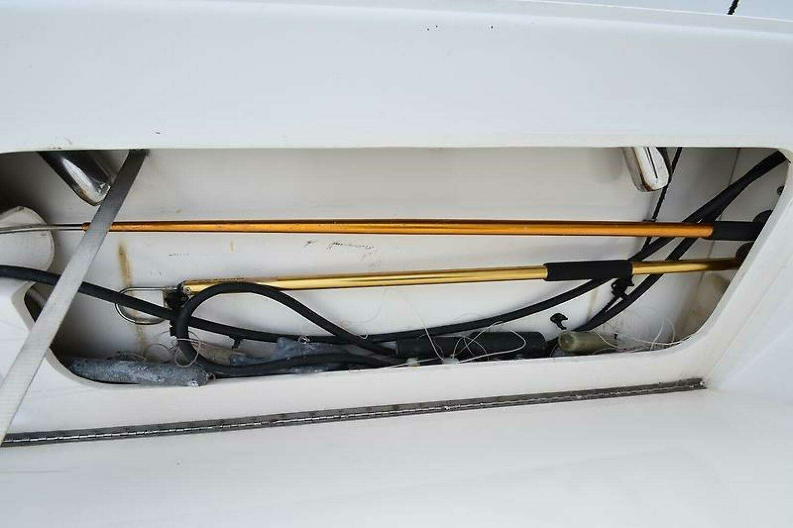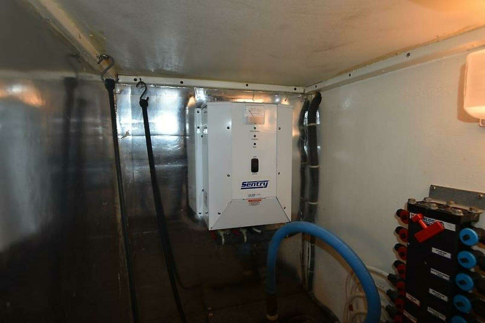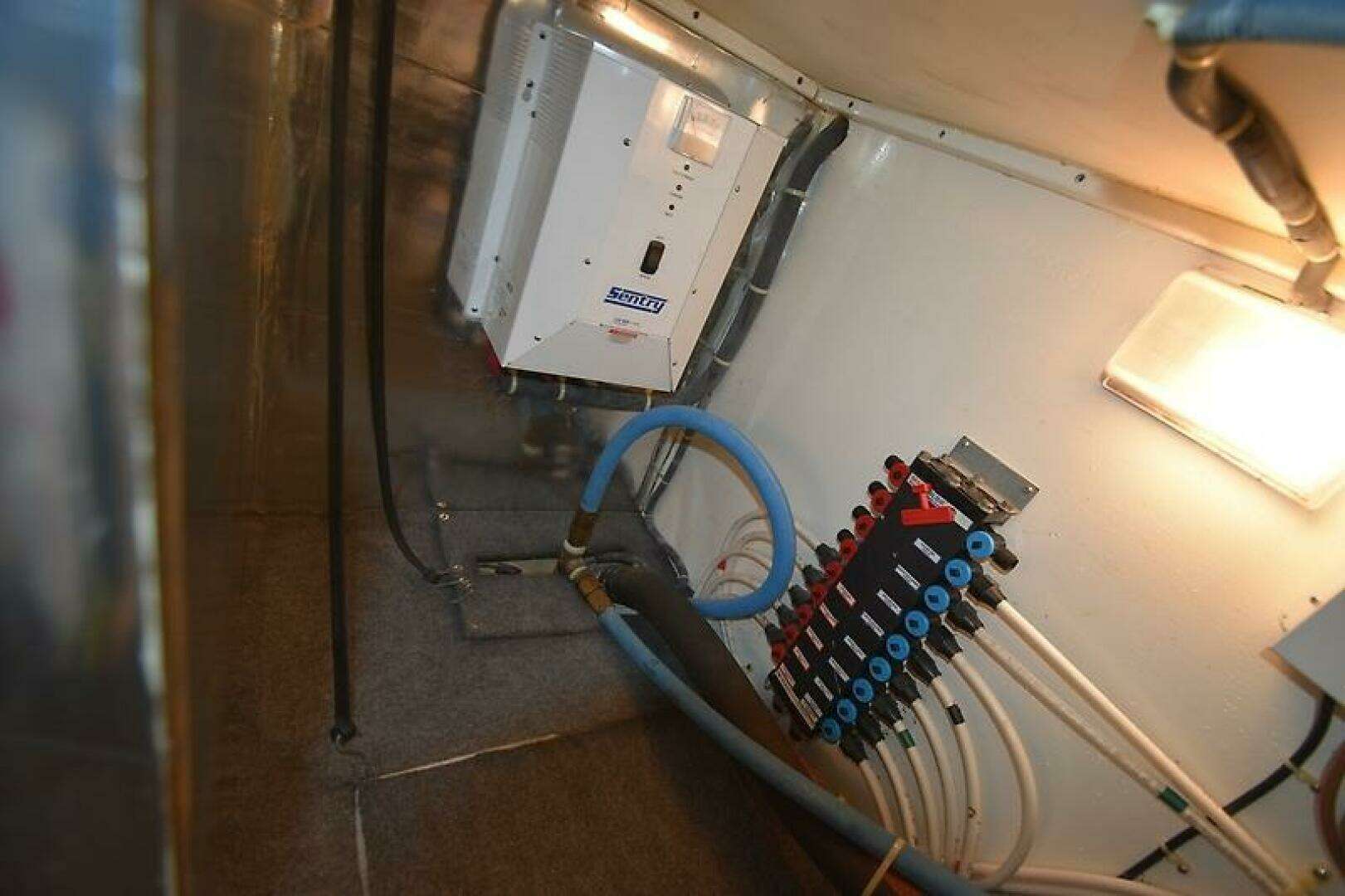 - Bonus Storage Space located via a large hatch in the Galley Floor (Water Heater, Fresh water manifold, Sentry 12v 60 amp Battery Charger, and 2 HVAC Condensing Units located in here, a 24k btu unit for the Salon, and a 16k btu unit for the Staterooms.)