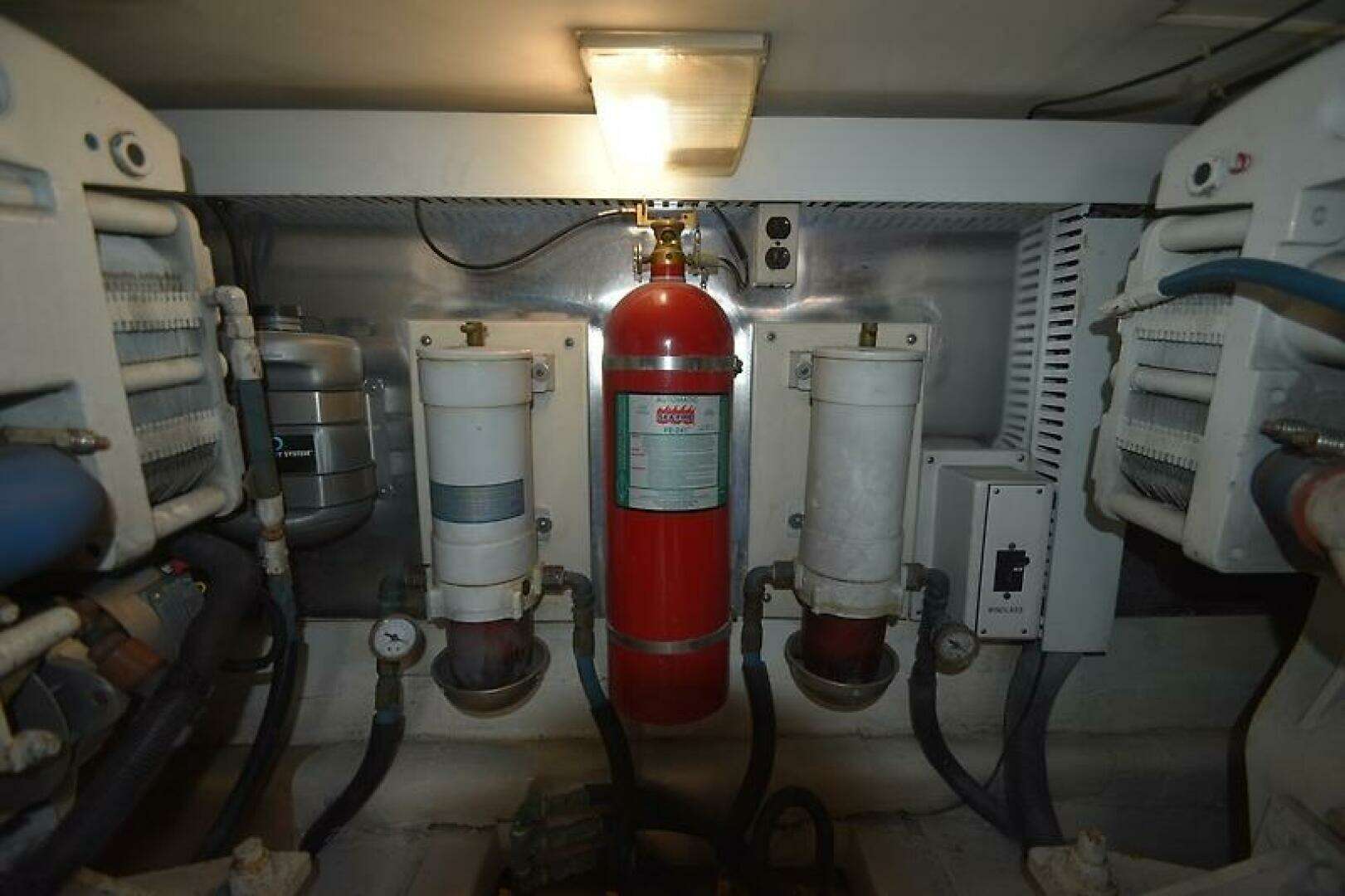 - Racor Primary fuel filters are located along the front/center of the engine room.
