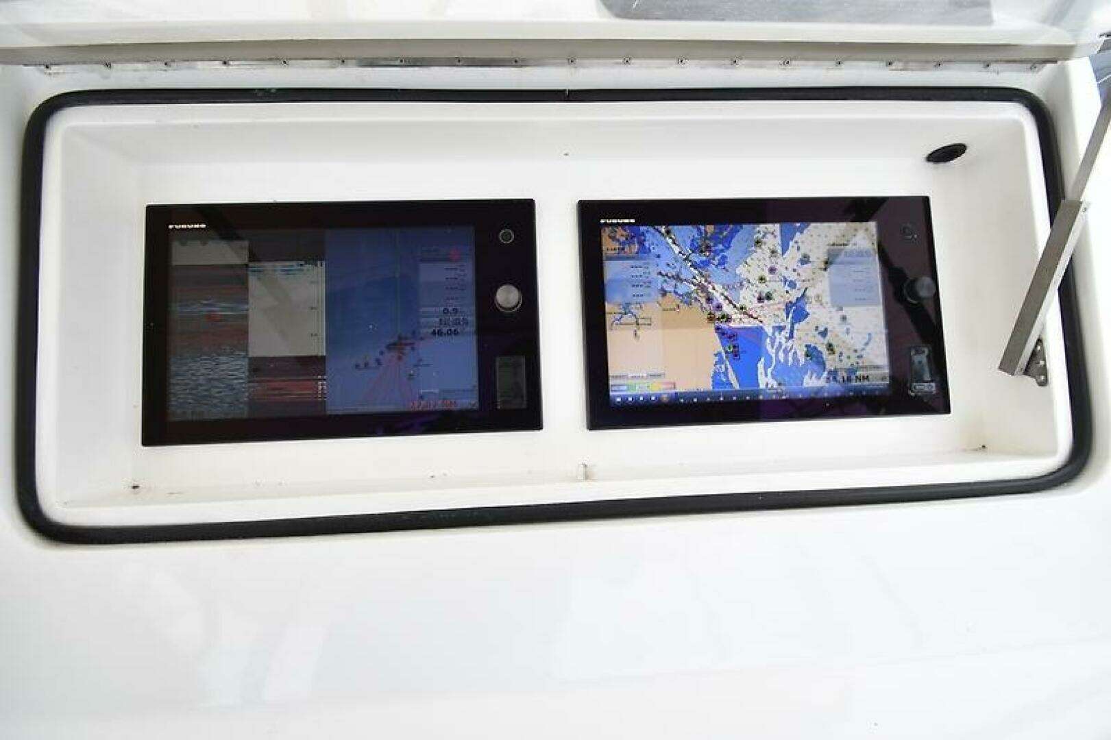 - Large Console with flush mounted Electronics Compartments, complete with clear acrylic lids (Small Compartment to Port, Steering and Controls in Center, Large Compartment to Stbd)