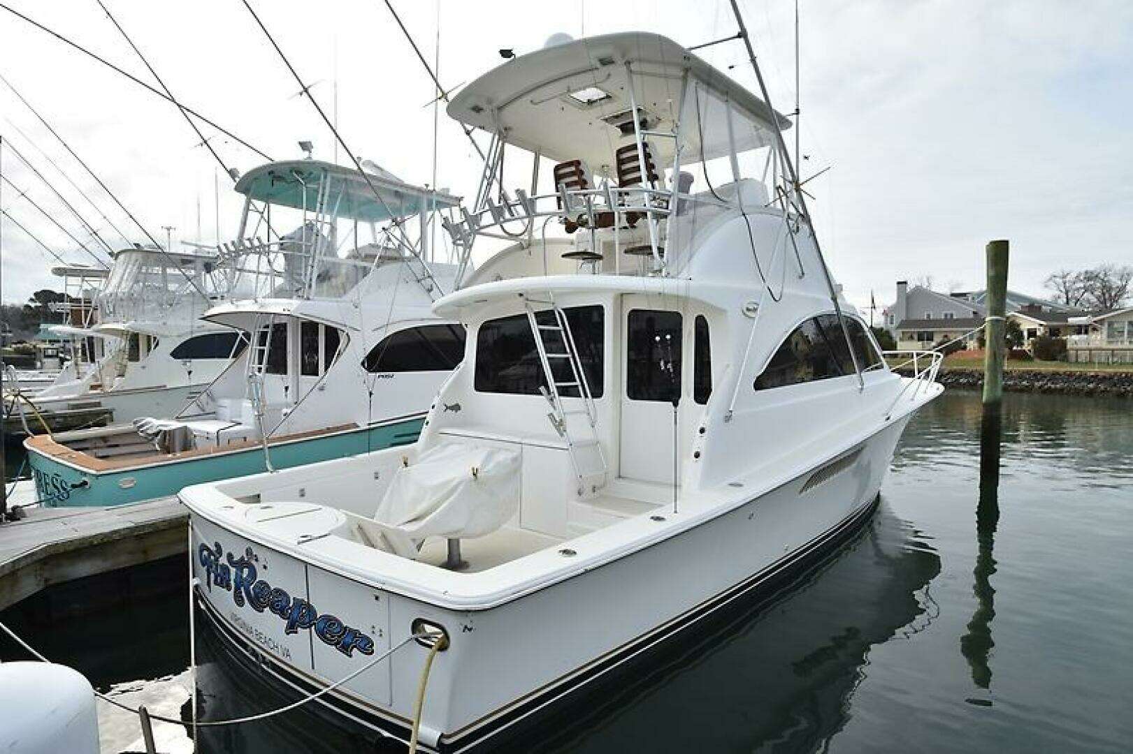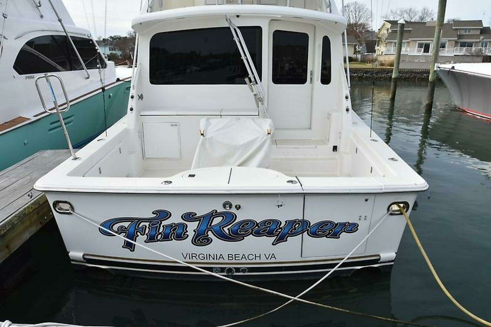"Fin Reaper" is a Convertible style Sportfisherman. Offering a Roomy Cockpit, Tournament style Flying Bridge, Rommy Salon with Galley and Dinette. Comfortable Interior with 3 staterooms, 2 heads and showers and ample storage.