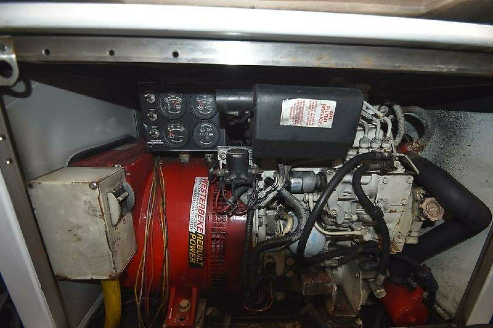 - Westerbeake 10 kw diesel powered generator located on the centerline, beneath the Engine room access ladder in a Sound Shield. There are 3680 hrs of use on the Generator. The "electrical end" of the Generator has been replaced. Serviced regularly