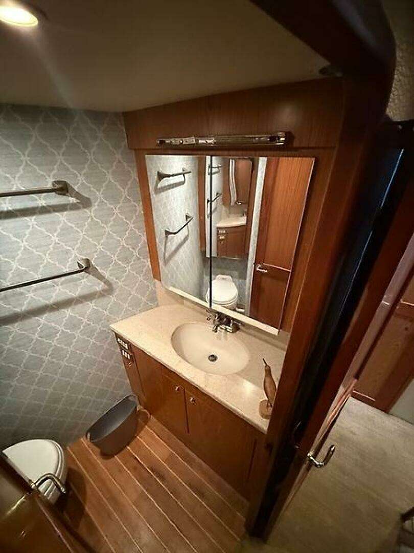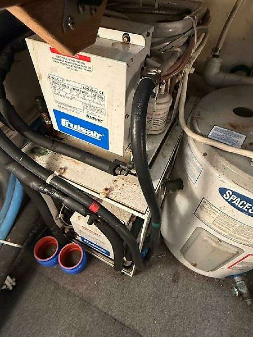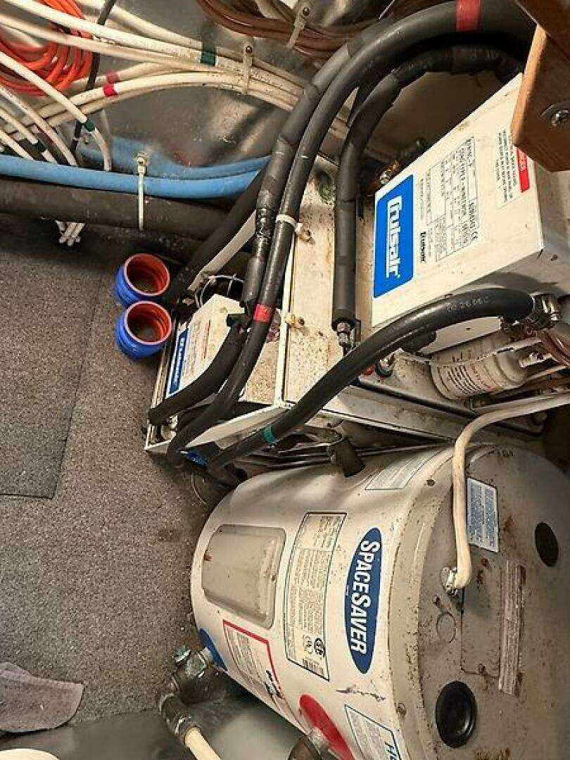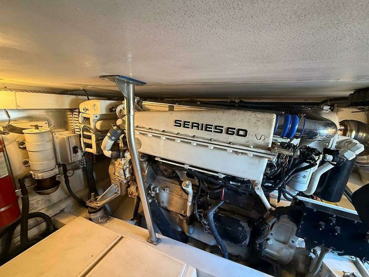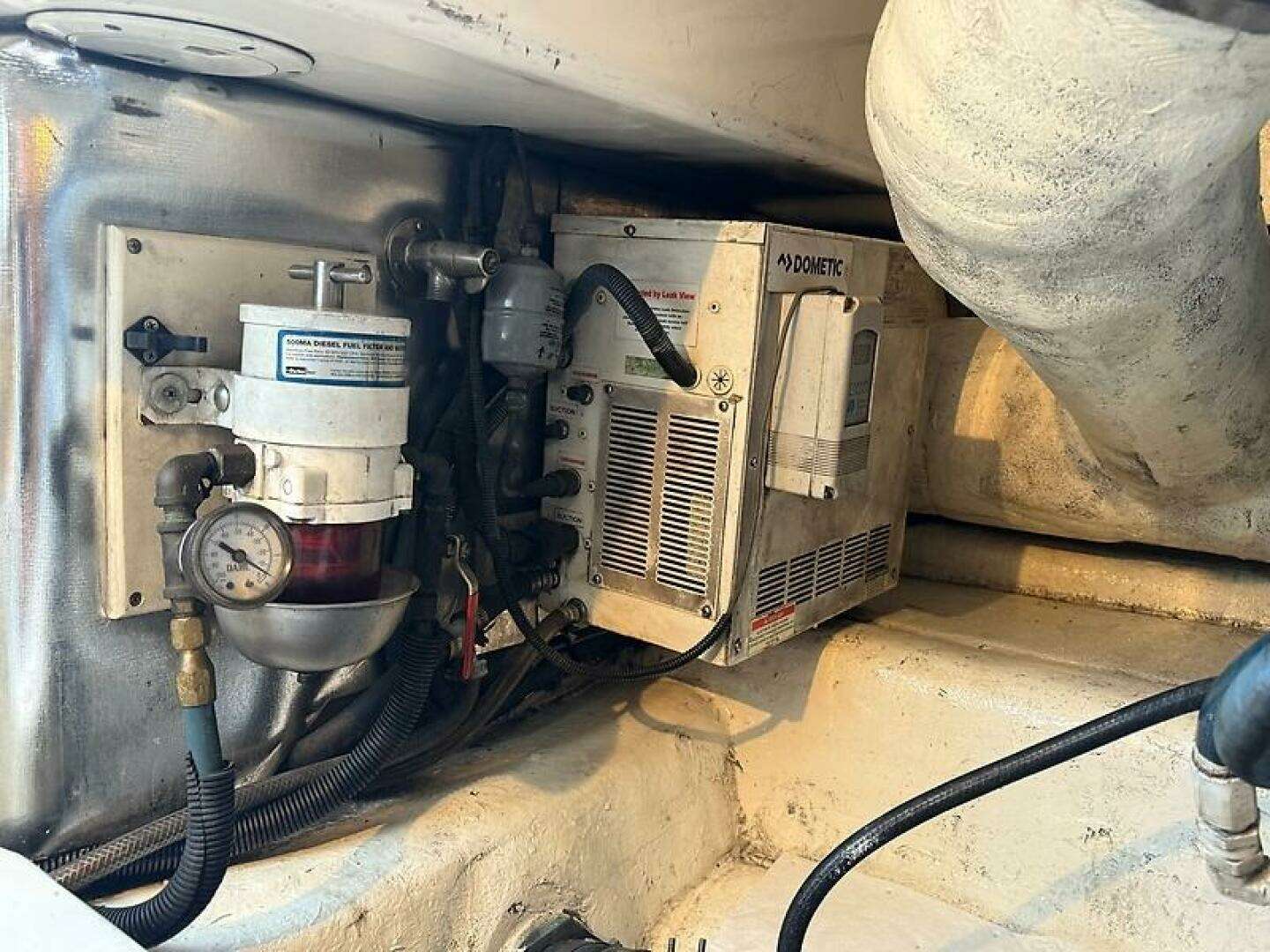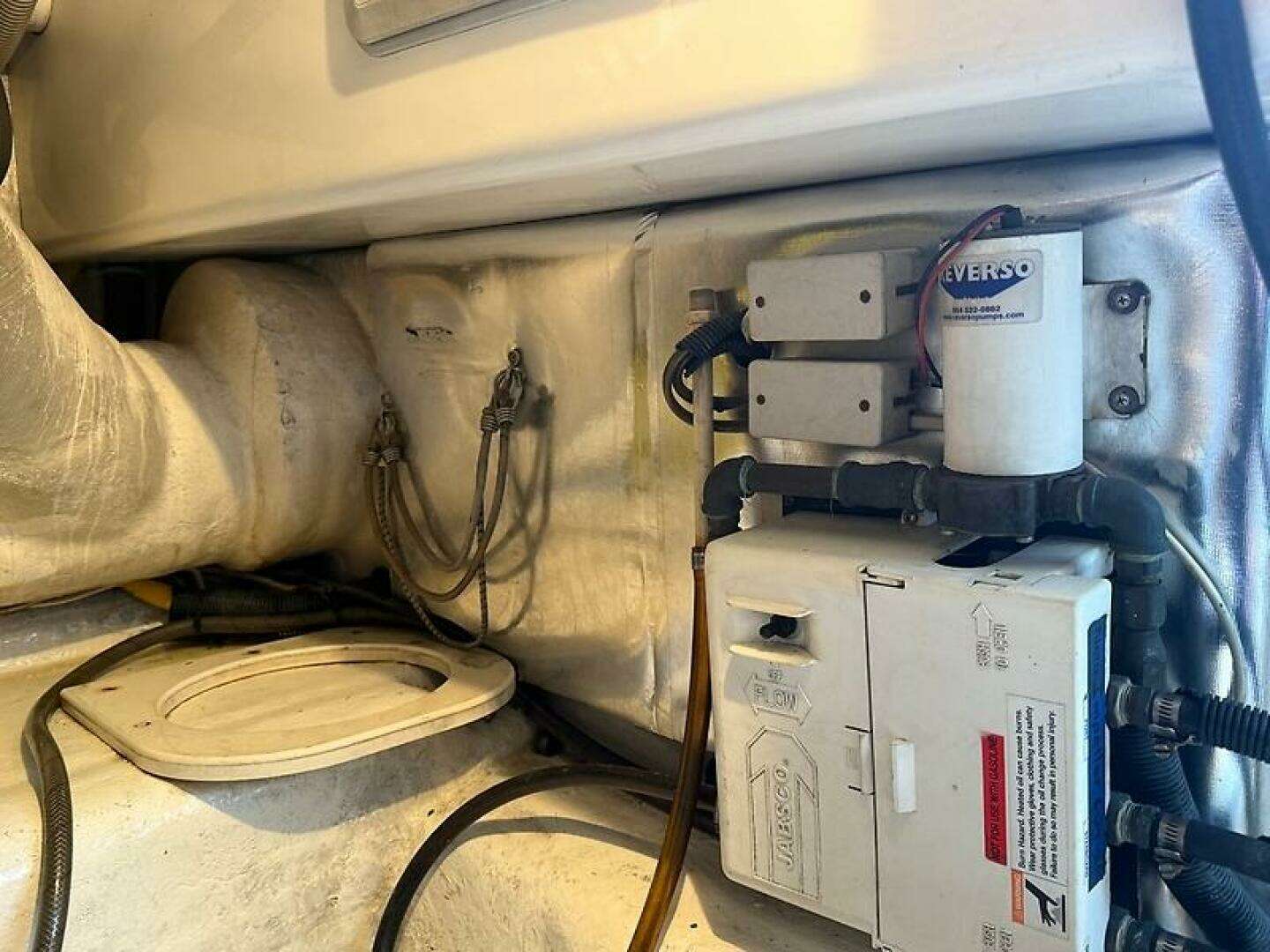 Downstairs the engine room is Awlgrip finished and engine noise and heat is suppressed with molded in sound proofing and insulation.