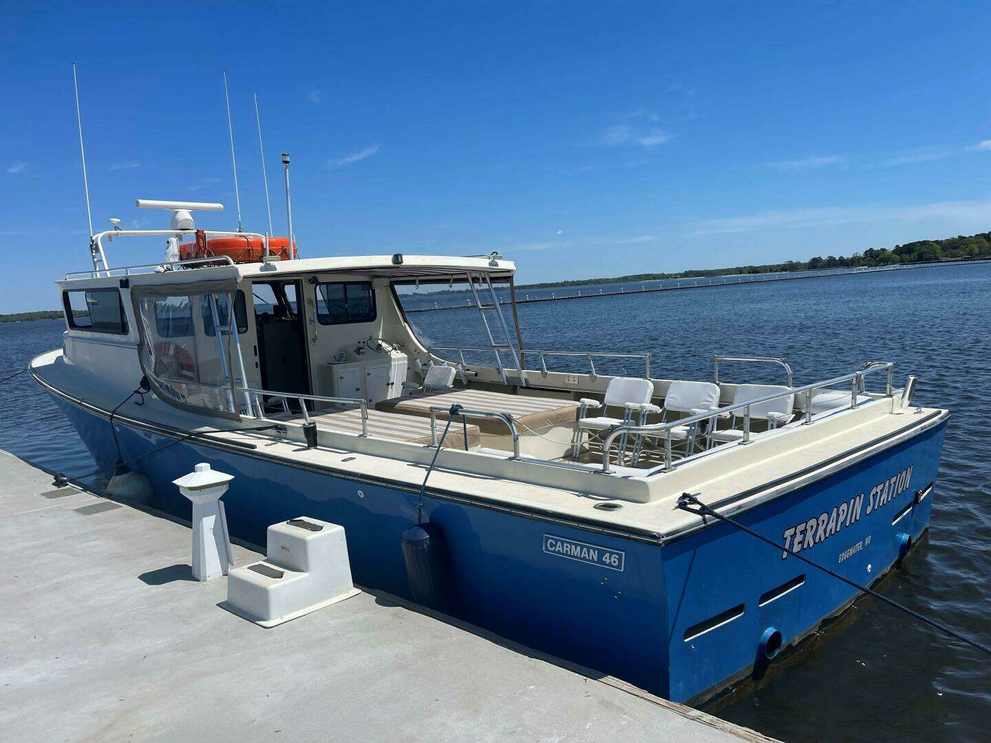 Just hitting the market is a 2001 Carman 46 Deadrise, Terrapin Station, a proven workhorse of the Chesapeake Bay fleet and an ideal opportunity for anyone looking to step into the charter fishing business with confidence. Built with the classic deadrise hull design, this vessel combines stability, efficiency, and durability—qualities that have made Carman boats a trusted name among commercial operators and charter captains alike.