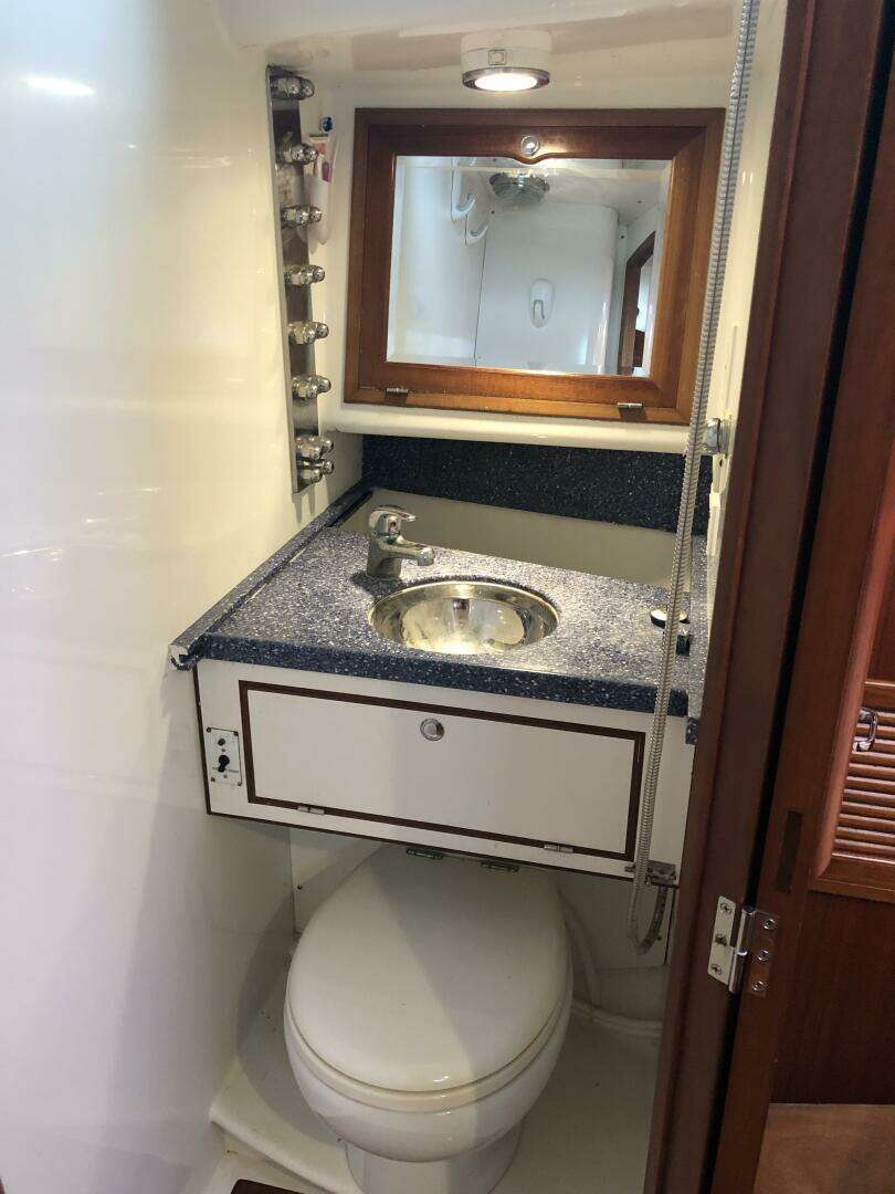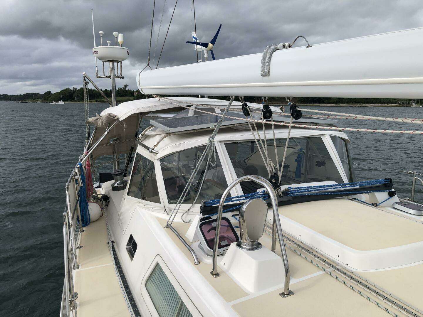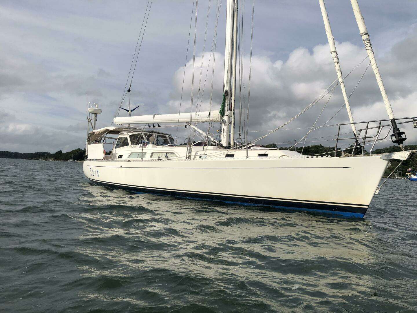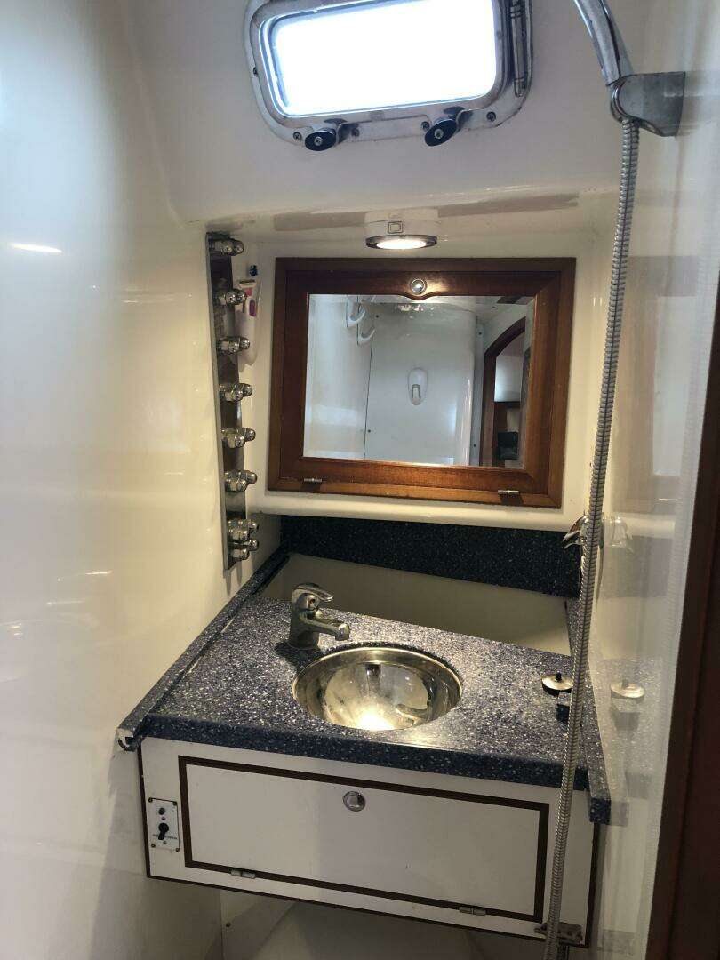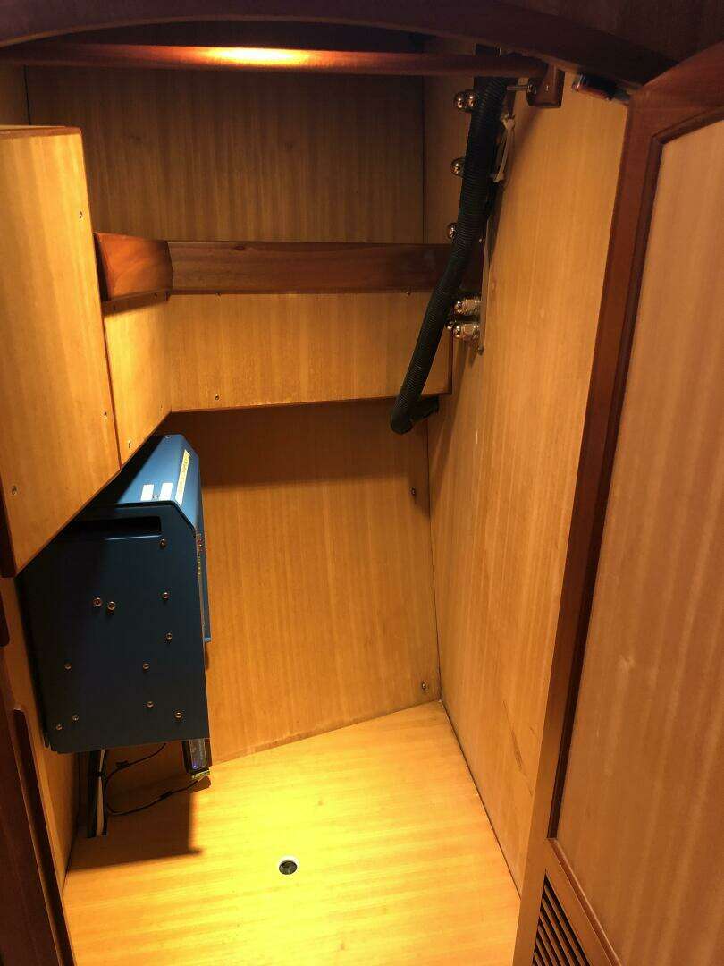 The third/current owners have been aboard almost full time, sailing between Bahamas and Maine. During their time of ownership they have actively maintained and continually upgraded the boat. They have appreciated the stiff, stable, sea kindly motion and performance on offshore passages, as well as the ability to move safely and efficiently from cockpit to navigation desk or aft head in all conditions. The ability to take a hot shower in the secure shower stall, even offshore in moderate seas is a real luxury that improves your time at sea. The independence that is provided by the large tankage and sizable storage space are features that are sought after by experienced cruising sailors.