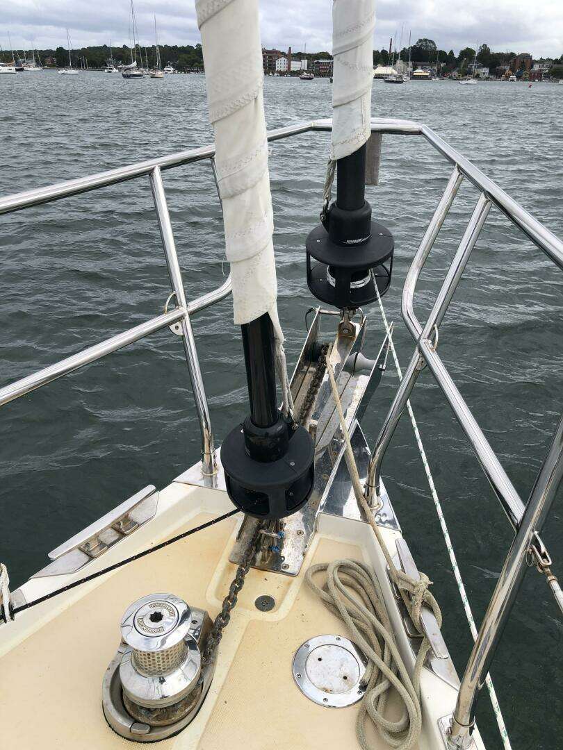 - Two Lewmar 46 winches mounted on mast