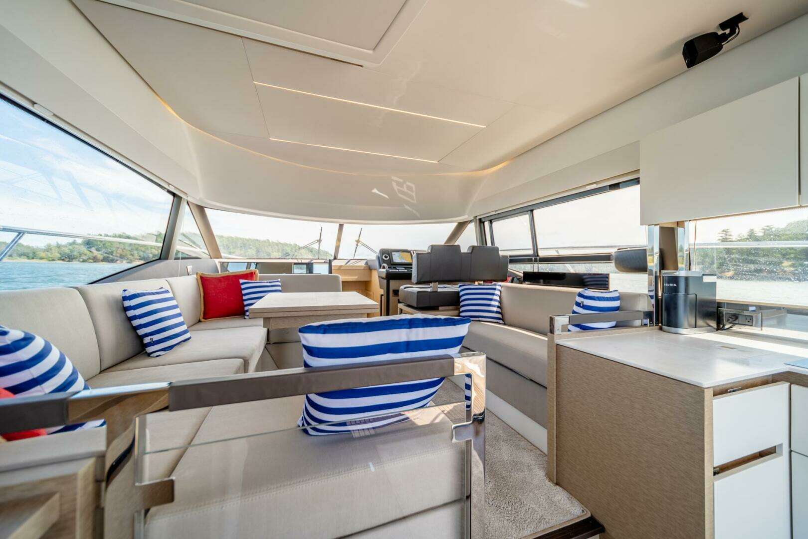 - Large windows to both port and starboard as well as a huge almost full-length skylight window in the deckhead above