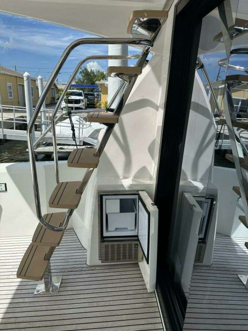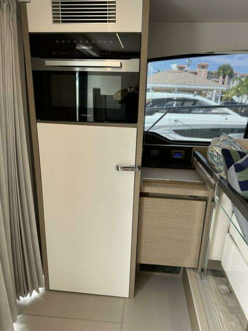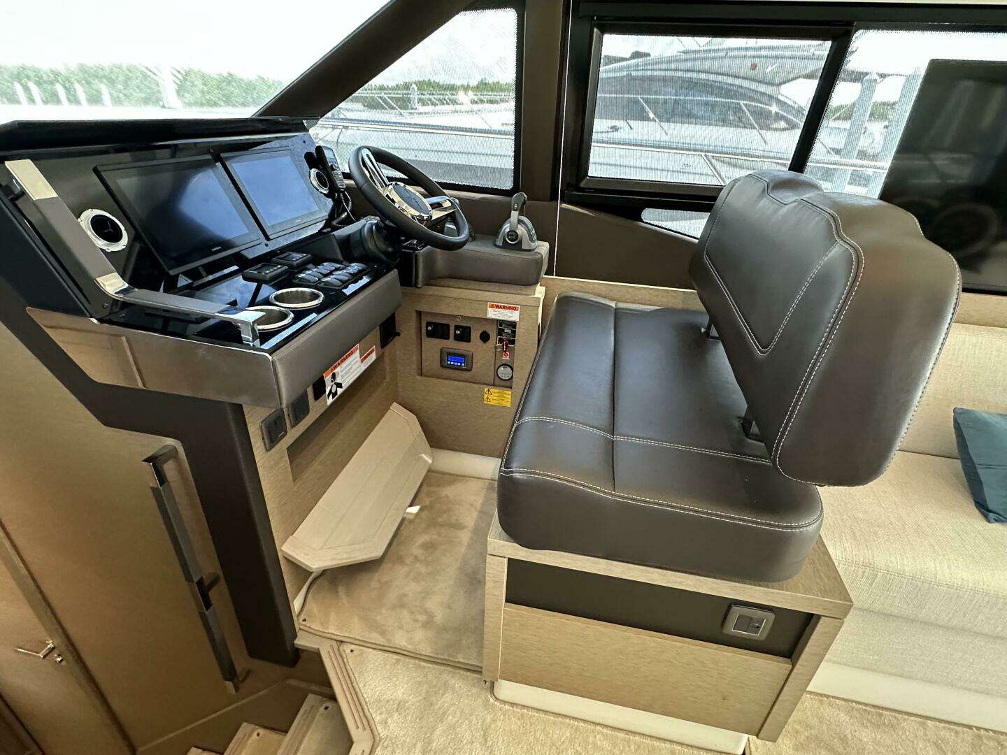 This 2024, PRESTIGE 460 FLY offers the amenities and the feel of a much larger motor yacht than one might expect. This yacht features many upgrades and options, but let me list just a few. She offers the North American Package that includes numerous upgrades and features such as a teak table in the cockpit, windlass anchor controls, stainless steel bow protection, protective covers for exterior seating, a wash down system, and a Glendinning shore power cable system. The Garmin Electronics package at the lower helm features two 12-inch Garmin screens, radar, autopilot, and VHF. A complete Flybridge Electronics Package is also included. She boasts both an upgraded interior as well as an exterior soft goods package. A Bowers and Wilkens Stereo system with a multizone receiver including B&W Speakers in the salon and on the exterior decks. Her comfort has been enhanced by installing a SEAKEEPER 5 Gyro which is not usually found in this particular model.