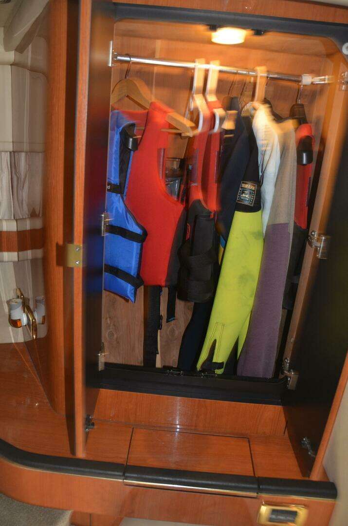 - Full cockpit canvas enclosure with aft windows (lines/cleaning supplies) (line locker)