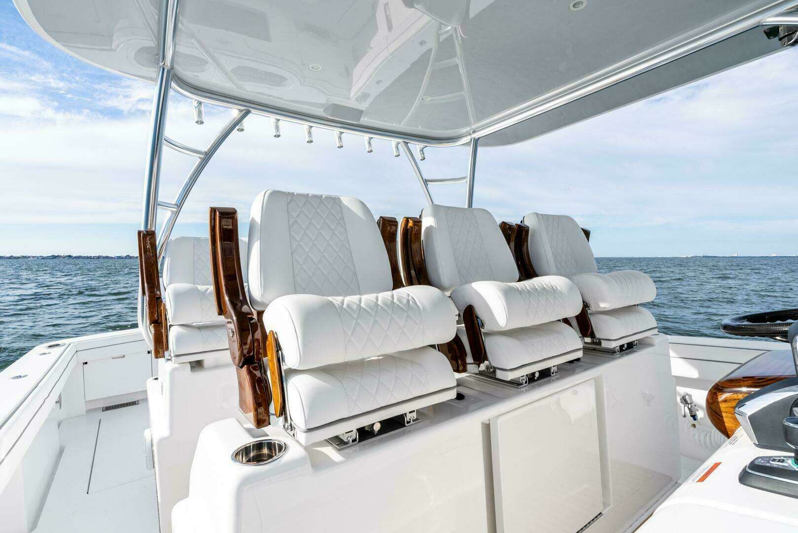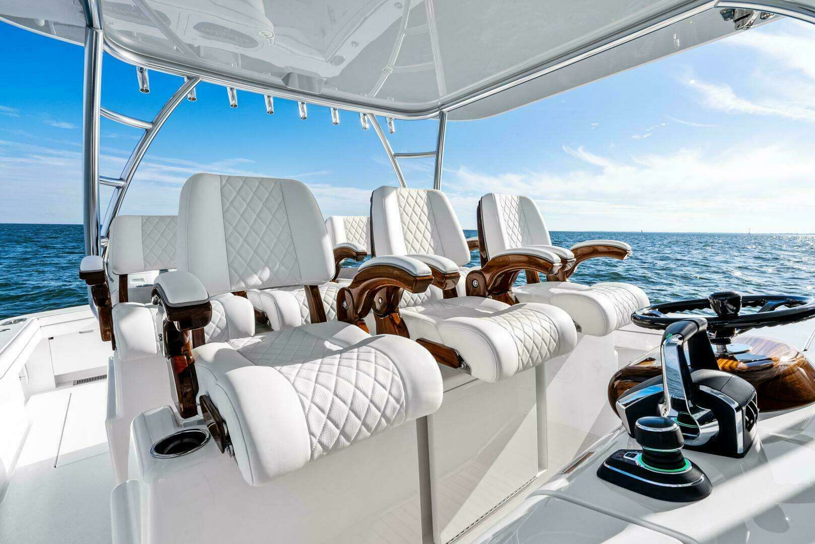 • Forward lounge seating integrated into console with (2) Gemlux cup/rod holders