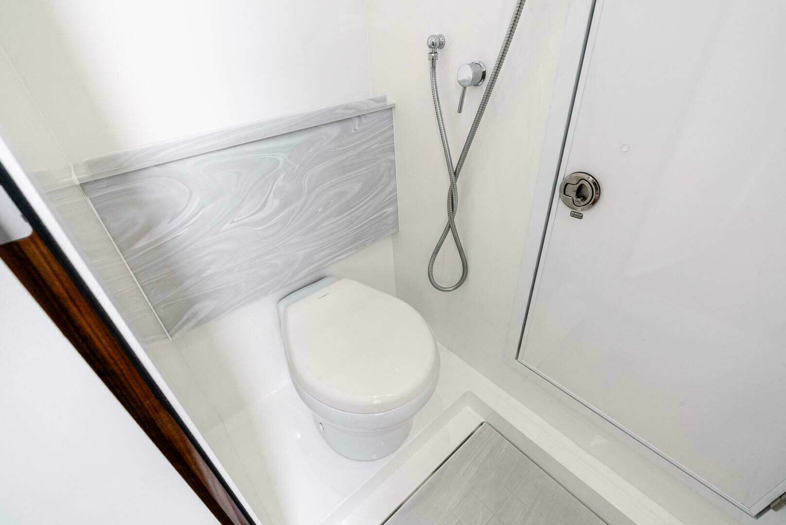 • Electric toilet with overboard and holding tank discharge