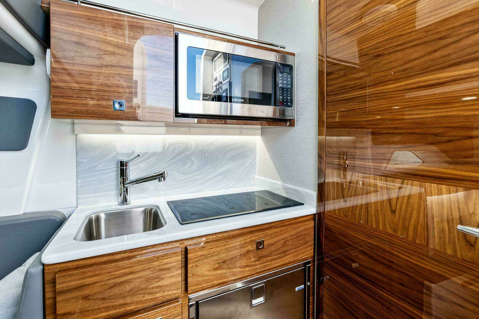 • Microwave located in upper galley cabinet