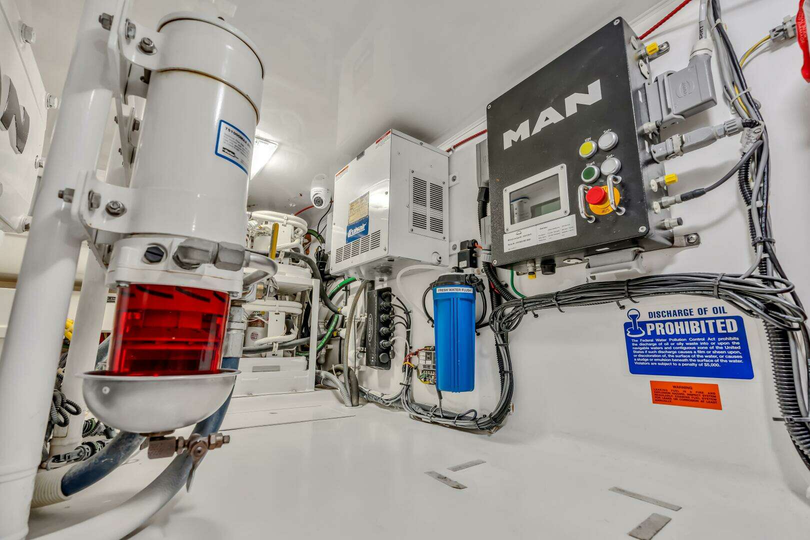 Twin MAN V-8 1000 HP Common Rail engines with 2100 hours