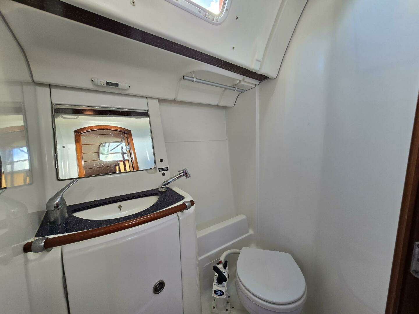 One of High Mana’s greatest strengths is her interior layout. The four-cabin, two-head configuration is ideal for families, charter-style cruising, or owners who regularly host guests. Forward are two generous double-berth cabins to port and starboard, each offering excellent storage and natural light. Aft, two additional double cabins provide comfortable accommodations with easy access to the two heads located at the aft end of the saloon. The saloon itself is bright and open, with large hull windows and overhead hatches creating a light and welcoming space. The convertible saloon table allows the main living area to become an additional double berth when needed, making High Mana a true six- to ten-person cruising platform.