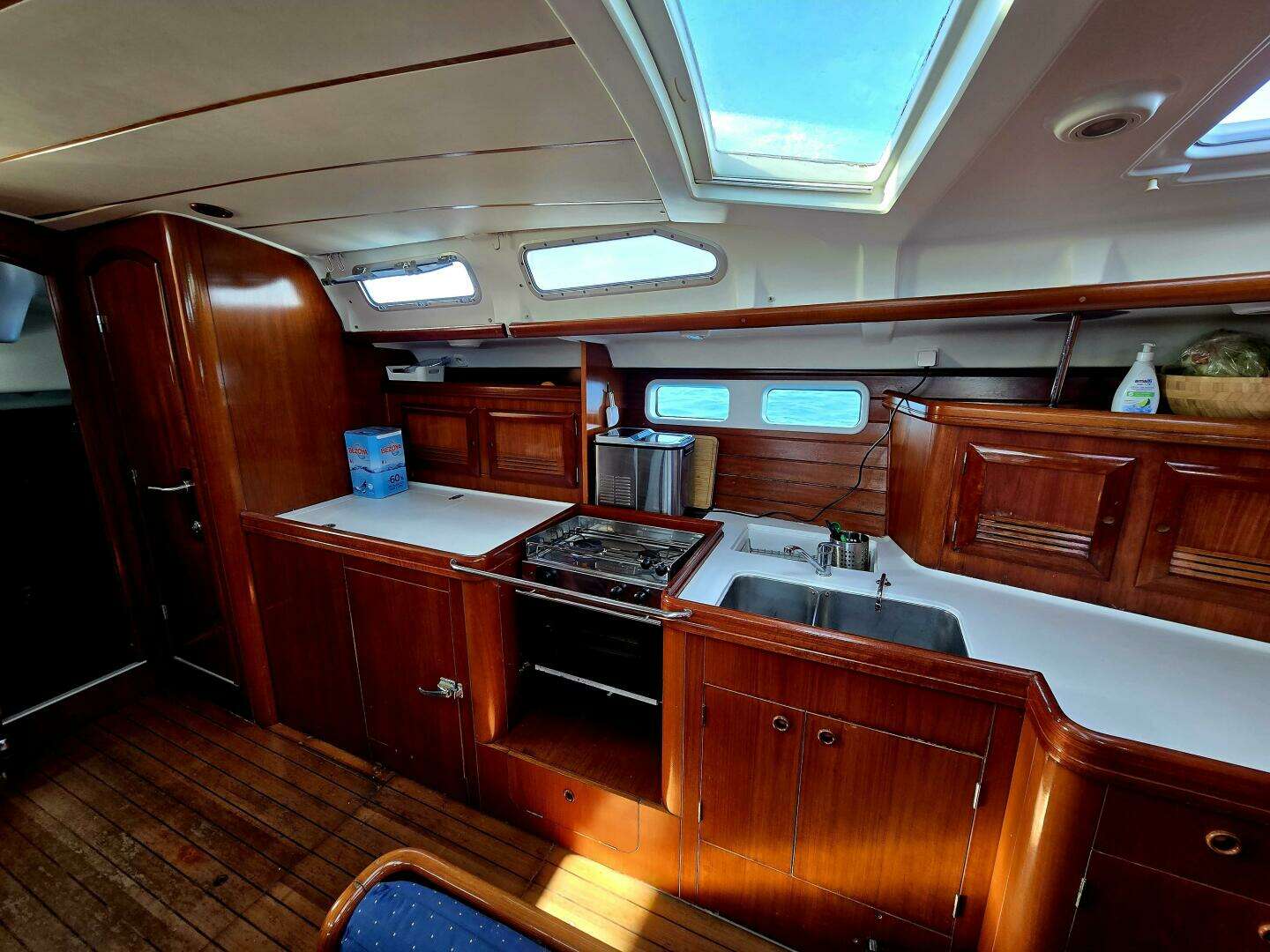 The galley and navigation station follow Beneteau’s well-proven design philosophy. Storage, refrigeration, and work surfaces are thoughtfully arranged for extended cruising, and the overall interior finish reflects the solid build quality Beneteau was known for during this era.