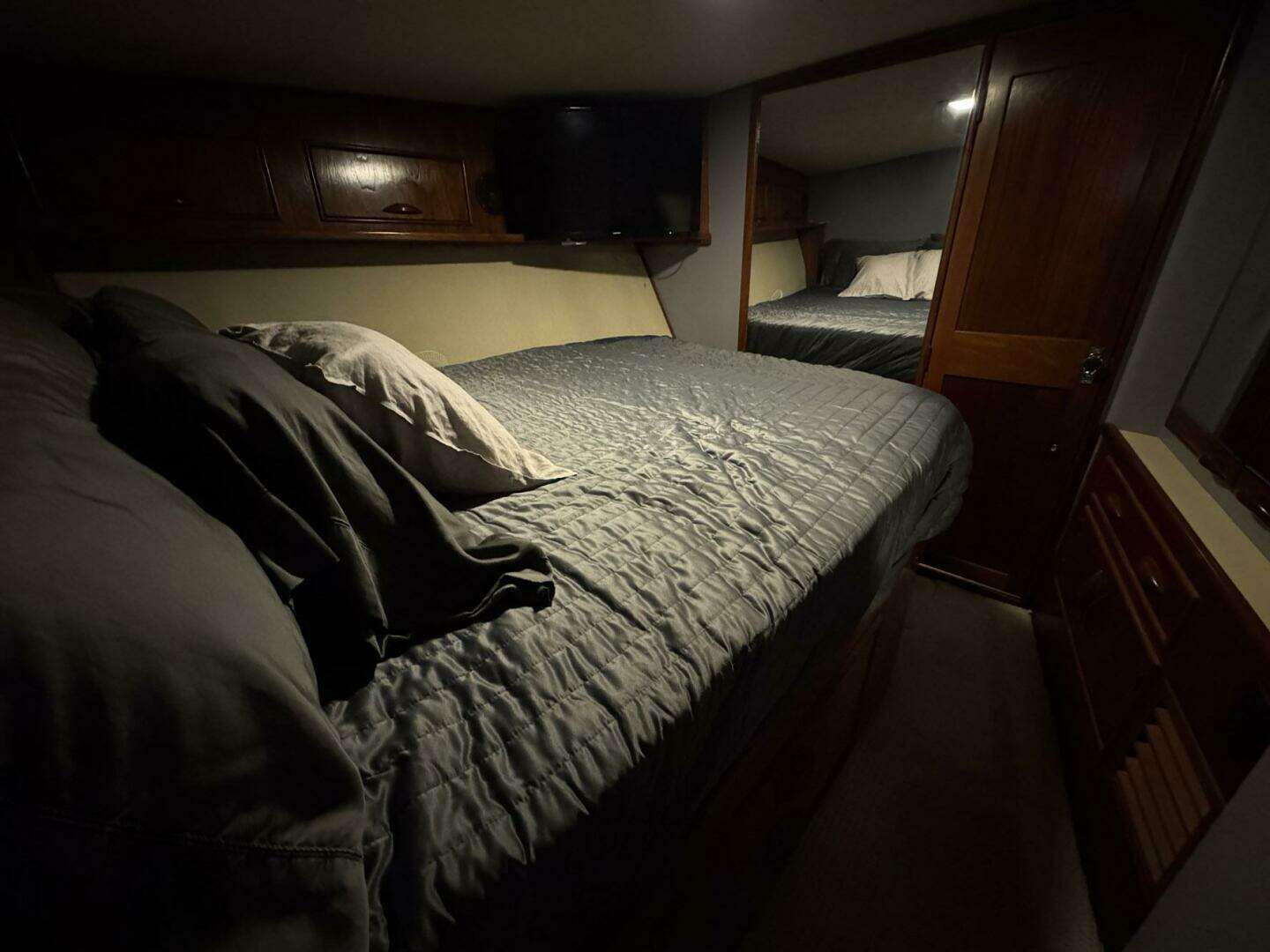 High Tide has been nicely updated throughout its last two owners to include Garmin electronics, night vision camera, bridge enclosure, hull and topside paint, starlink, a new Phasor-Kubota generator, fire suppression system, windlass, pedestal in cockpit, anchor, chain and rope, updated microwave, custom carpet, new faucets, and countertops. New cockpit TV, new props, underwater lights and black mask on brow all recently replaced. The Rockford-Fosgate speakers, subwoofer, and amplifiers will please even the most discerning audiophiles and at maximum volume!