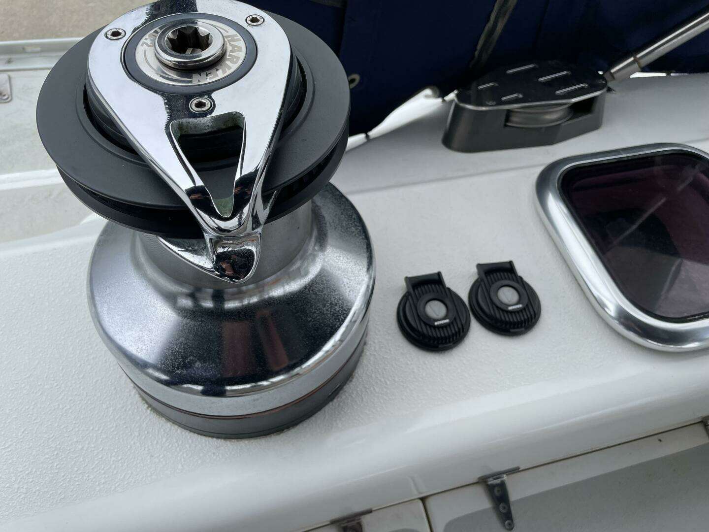 - 2 cabin top Harken winches, starboard is electric, port is manual
