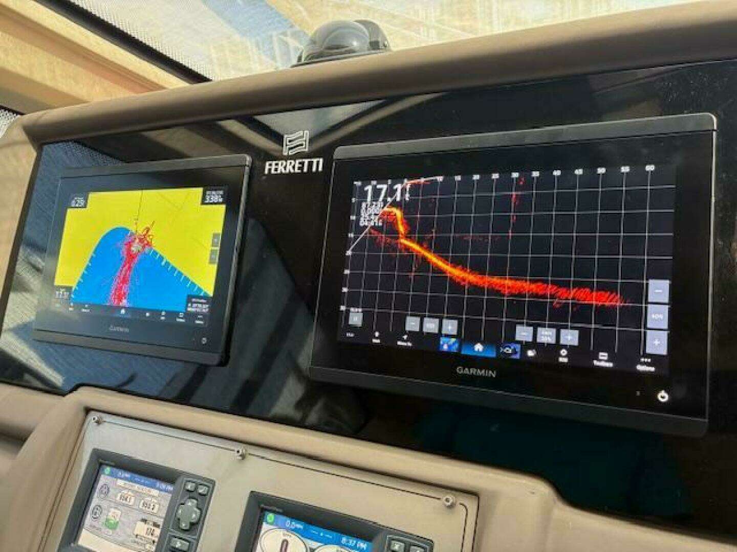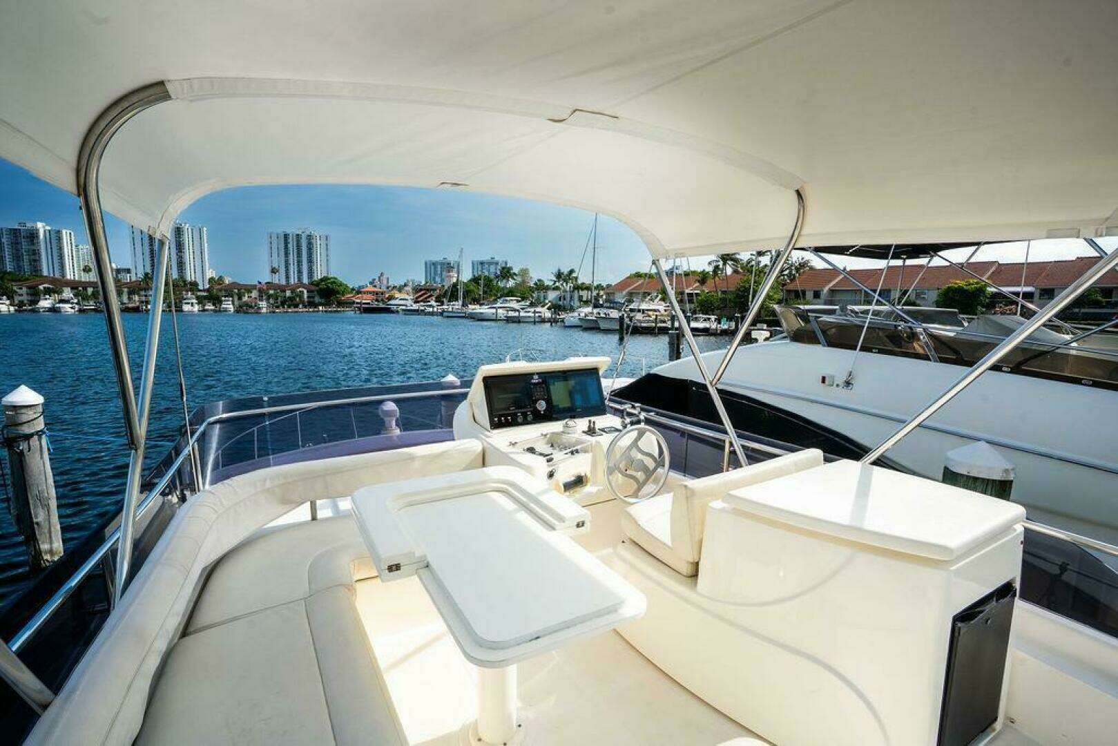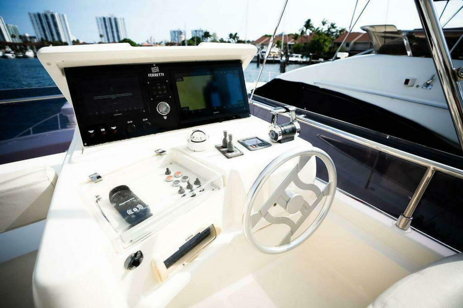 Ferretti 470 combines Italian design with clever space optimization and panoramic windows. 3 staterooms, 2 heads, bow & stern thrusters, new Garmin electronics, new A/C, flooring, audio, and Bimini. Located in Aventura, FL — priced to sell, offers encouraged.