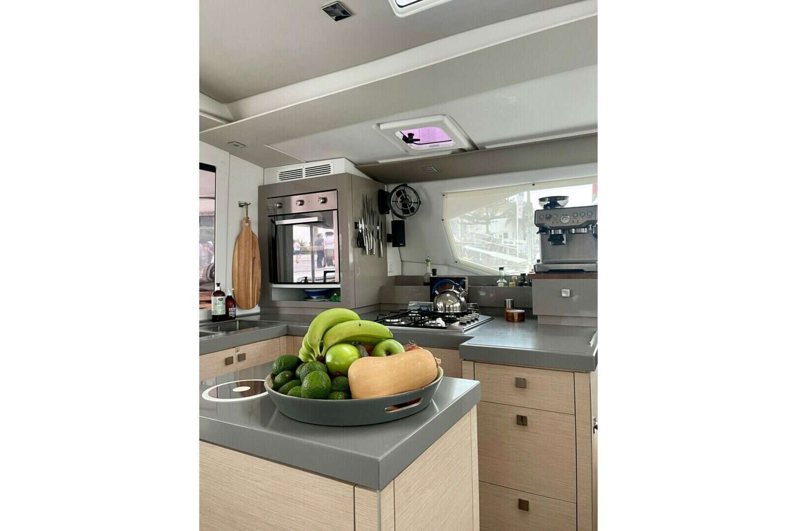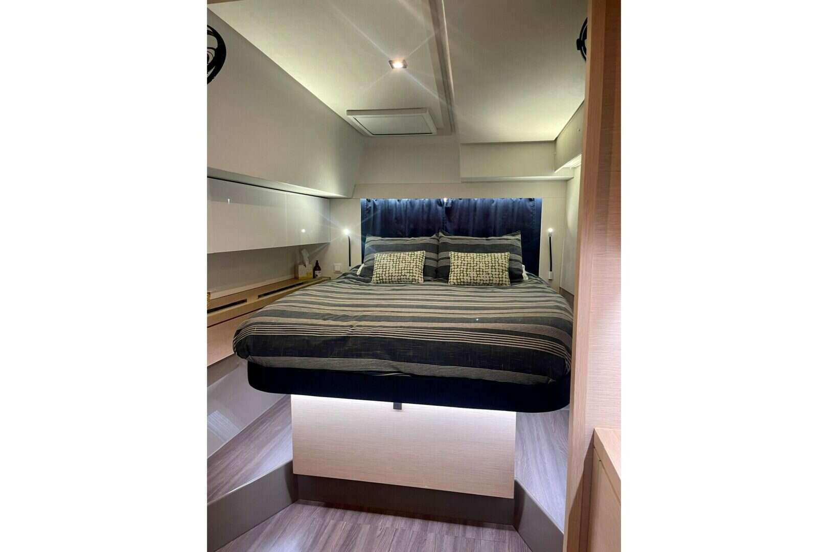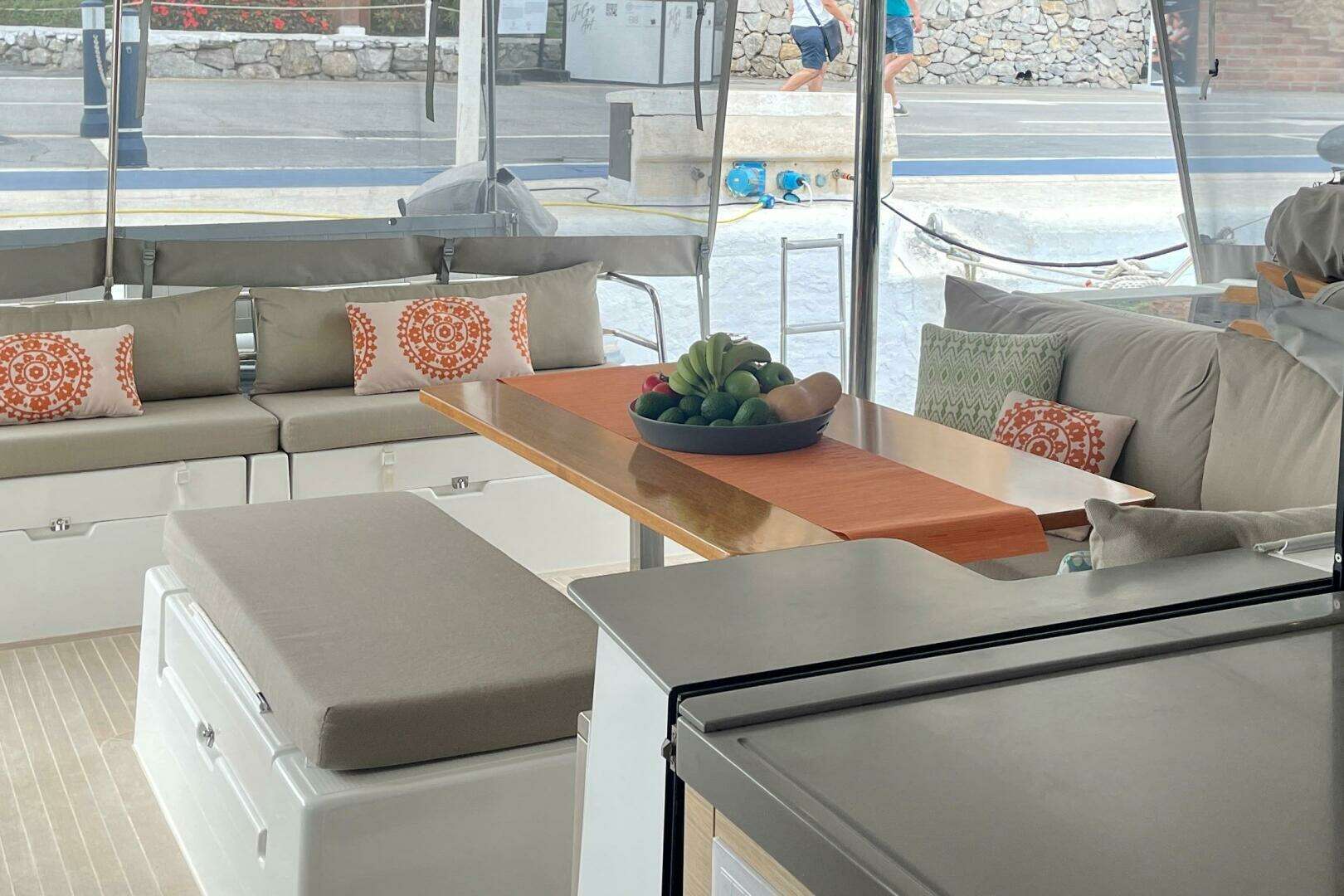 Arriving to Fort Lauderdale October 22!"Grand Crew" is a 2019 owner version Saona 47 that has been privately owned and lightly sailed in the Caribbean. Her list of equipment is extensive with generator, solar, Furling code 0, NEW lithium bank 1200 Amp hours, 2x 3000W inverter chargers, Iridium Satellite, and Dopplar radar, washer/dryer, hydraulic davits, full cockpit and helm enclosure and another full set of sun shades, real teak decking, OC tender dinghy with 20 hp OB and so much more. The Saona 47 boats expansive living areas for enhanced cruising pleasure. Grnd Crews expansive cockpit is intelligently designed for entertaining and features an extended platform to easily facilitate a host of leisure activities. Immerse yourself in the foredeck's huge sun lounge or share in the cruising experience at the helm station as you unwind on the exceptionally large upper lounge deck.The exquisitely crafted saloon is bathed in bright natural light, and her comprehensively equipped galley has an island bench and an abundance of storage for extended cruising. She is a 3-cabin owner version featuring a decadent master suite that occupies an entire port hull complete with a luxurious ensuite with Italian-style shower, with two large guest cabins in the starboard hull with their own exclusive ensuites. More photos to come soon after her arrival to Ft Lauderdale!Below are just a few of Grand Crews's most impressive features: Upgraded 60HP engines w/ Bronze racing folding props Full suite of Raymarine navigation and electronics Victron 3000 multiplus inverter/charger X2=6000va 6 powerful Dometic air conditioners with individual control units Teak decking: cockpit, helm and upper cockpit HookaMax Hooka Rig w/2 Regs. 30ft air tethers each 2300w Solar Power (7 panels) ($12,000) 1200a Lithium Battery House Bank (4 x 300a each). 6kw inverter system Underwater lighting Upgraded reefing system to single line reef for all three reef points New 3-blade folding Gori Props with overdrive ($6,500). New Code 0 ($4900) New Thales Vessel Link Satelite receiver ($5,000) Redbox Multi wan-port router ($2,000) HI-GAIN wifi antenna Security cameras Redundant Raymarine gauges @helm and nav station Backup Fortress F39 anchor New saildrive seals/rub (April 2024) New Raymarine Axiom Pro 16" Chartplotter New anchor bow roller and bridle New Propane tank New 3/8" BBB anchor chain-300ft New bidet in master head EchoMax EM230 radar reflectorNavigation and Electronics Raymarine wired VHF radio handset Raymarine AIS transceiver Raymarine autopilot helm controller w/GHP hydraulic reactor Raymarine instrument display Raymarine Doppler Radar Raymarine 16" Axiom chartplotter at the helm Charts for Eastern US, Bahamas, Caribbean, and Mediterranean Quick digital chain counter/remote at the helm Fusion AV 650 multi-zone stereo head; Bluetooth and SiriusXM capable Bose Speaker System in the saloon, cockpit, and bowDeck, Sails, Rigging Dacron square-top mainsail on a stack pack system w/sunbrella sailbag Dacron jib on a ProFurl roller furling system Dacron 1600sq.ft Asym with sock (2023) Lewmar 50ST 2-speed electric winch at the helm Lewmar 45ST 2-speed electric winch at the helm Lewmar 45ST 2-speed winch at the helm Antal V-CAM 814 quadruple clutch at the helm (main halyard, reefs 1-3) Antal CAM 611 double clutch at the helm (traveler) Antal V-CAM 814 single clutch at the helm (main sheet) Antal V-CAM 814 single clutch at the mast (spin halyard) Reinforced Hydraulic Lift platform for Tender Full cockpit and flybridge weather Cockpit sun enclosure ProFurl genoa furler Hydraulic swim platform chocks w/Lewmar 50ST 2-speed winch-tender lift 2 x 300 ft dock lines for med-mooring 400ft spool of 10mm mooring line Gang Plank 10X Fenders Force 10 Gas GrillElectrical: 220V NEMA Shore Power system with 50 ft. cable-US connect 220V NEMA Shore power system with 50 ft cable-Euro connect ACTIVESOL rigid solar panels 300W (x3) Solbian flexible solar panels (250W x 4) Victron MPPT 100 | 30 BlueSolar Charge Controller (x6) Victron MultiPlus 12v/3000A/100AMP Charger/Inverter (x2) 4 x 300Ah Lithium house battery bank (1200Ah total) E-xpert PRO digital battery monitor at the navigation desk Analog fuel/water tank monitor and selector at the navigation desk Cummins ONAN 13.5kW Marine Generator: 2,300 hrs High water alarm in bilges Galvanic IsolatorInterior Features High-low coffee table that converts into berth in the salon 360 degree custom salon curtains Sage Bartista espresso machine Caframo variable speed/time fans throughout (x10) Splendid Washer Dryer Custom after-market tailored bedding in each of the 3 staterooms Electric heads w/flush control in the 3 main heads Fully integrated fresh water head control switch in each of the 3 main heads Textaline sun covers custom fitted for each salon window/portlight Upgraded salon fabric-beige color Sunbrella designer throw pillows interior and exterior Samsung TV in SalonMaster Cabin/Head Queen-Sized berth with 3" custom topper Bed base slat kit under all beds Large window and overhead hatch Porthole in cabin rear Reading light and fan (x2) privacy curtains Electric-flush toiletGuest Cabins/Heads Queen-Sized berth with 3" custom topper Bed base slat kit under all bed Porthole Reading light and fan (x2) privacy curtains electric flush toiletsCaptains Cabin Access on Starboard forepeak twin bed air con controls toilet with fresh water flush and sink Scirocca fanEngines and Propulsion: Volvo D2-60F, 150S Saildrive Folding 3-blade Gori propeller with overdrive Engines hours: 2510, 2630 13.5KVH Cummins Onan Generator: 2300 hoursMechanicals and Plumbing Jabsco electric flush heads (x3) Jabsco manual flush head (crew bunk, fwd starboard forepeak) 12V Aqua-Base reverse osmosis 40GPH Cafrano Sirocco II 12v multi-speed fans (x10) Rule-Mate 1100 GPH automatic bilge pumps (x2) in engine bays Whale exterior hot/cold freshwater outdoor shower on port transom Cruisair 48,000BTU (8000 x6) Air Conditioners Raycor 75500 dual fuel 
