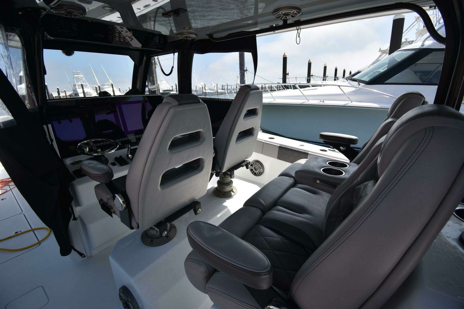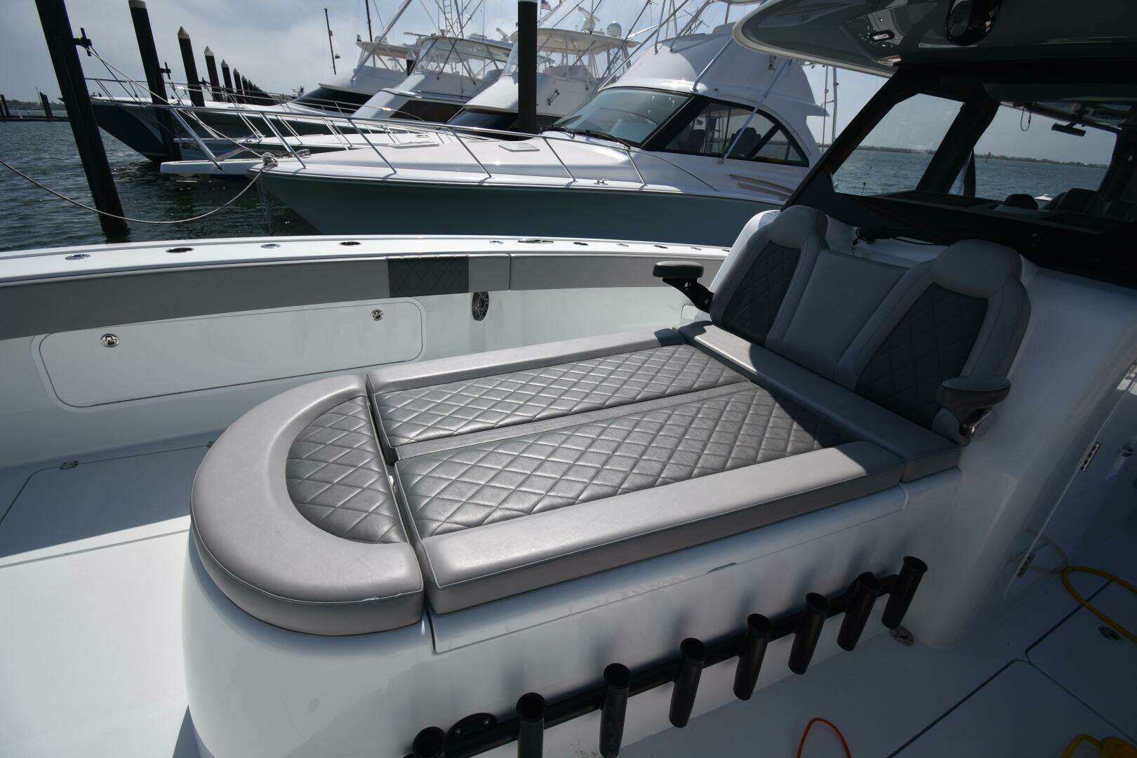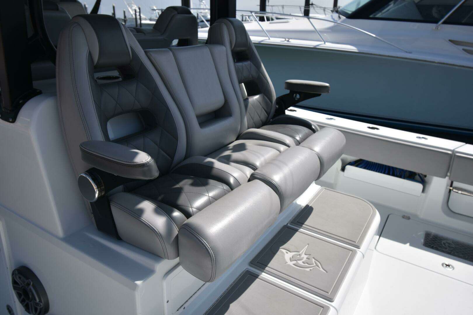 The triple-row seating configuration offers ample, comfortable seating for your entire crew beneath the spacious t-top. Contact the listing broker, Max Schulze, today to schedule your private showing.