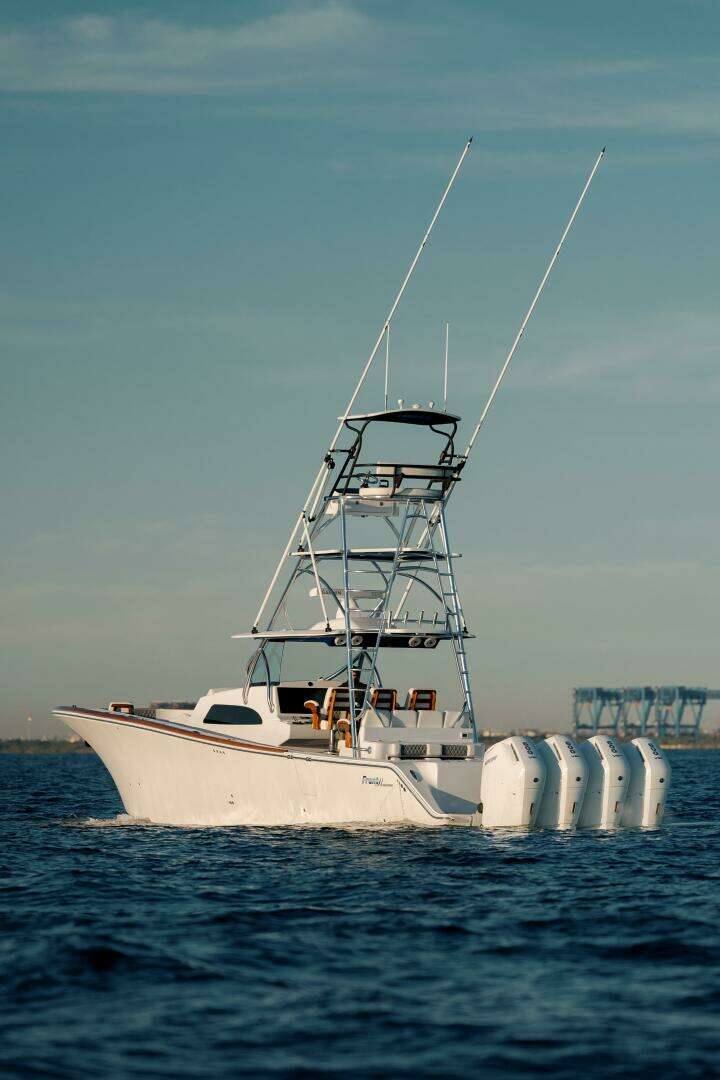 Her proud, aggressive bow is not only a head-turner at the dock—it’s designed to cut confidently through rough seas, offering a dry ride and excellent stability, even in challenging offshore conditions.