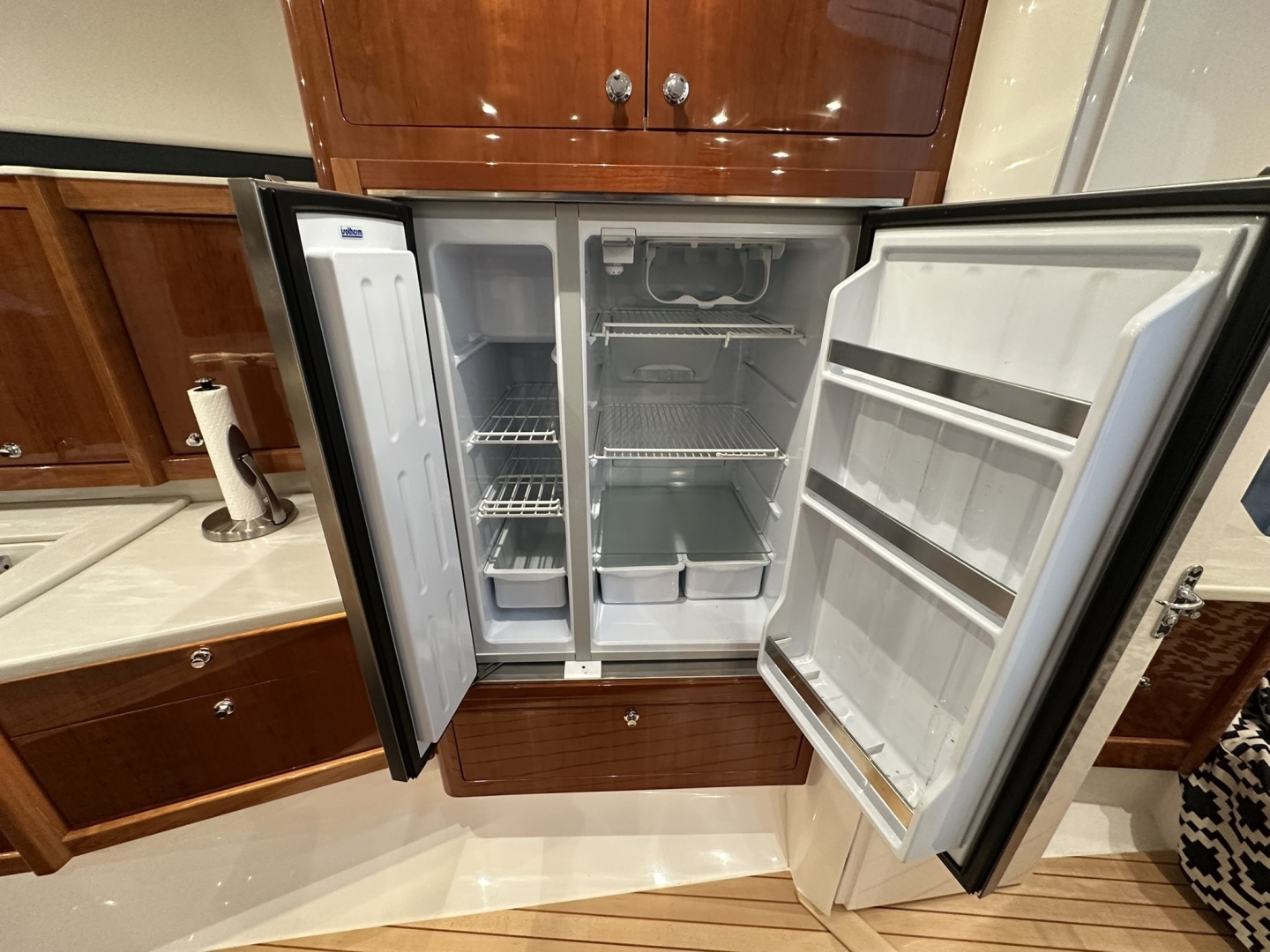 - Galley: Equipped with microwave, cooktop, and side-by-side refrigerator/freezer.