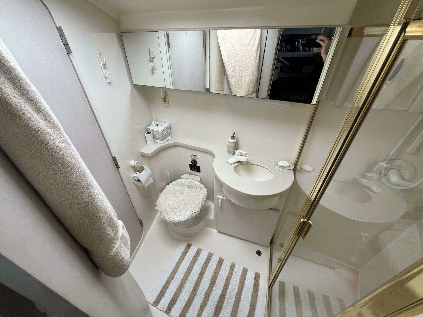 - Both Heads have Sealand Vacuflush 12 volt toilets, vanity, sink and separate shower stalls in each head.