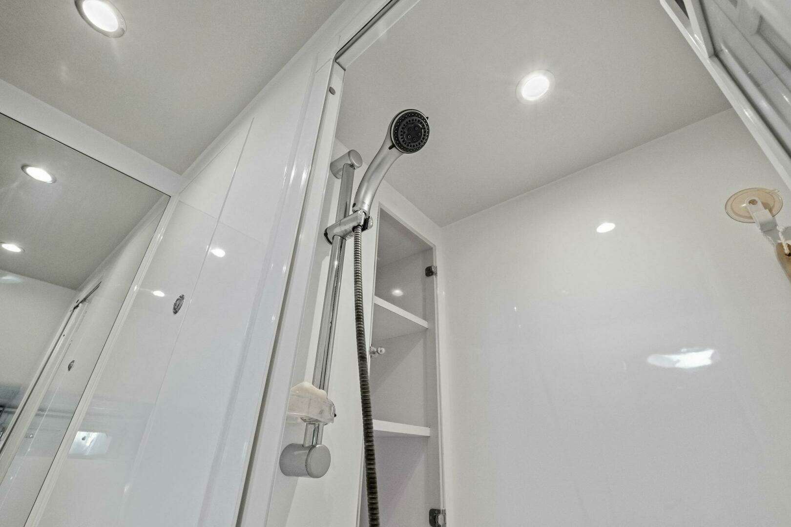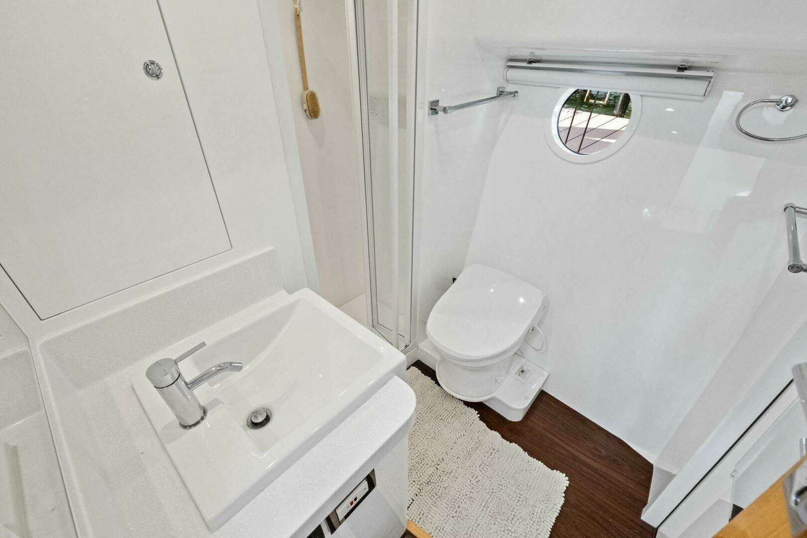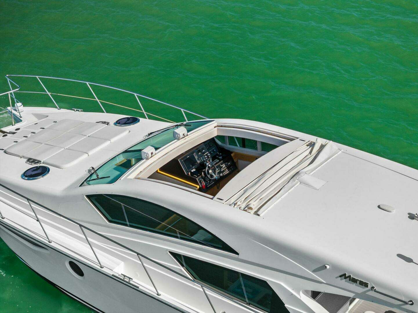 Designed with entertaining in mind, the spacious salon features a large retractable sunroof, while the aft galley with flip-up window seamlessly connects the interior to the cockpit seating and grill area. Below deck, the boat offers a forward master stateroom with king berth and private head, providing the space and comfort of a much larger yacht.
