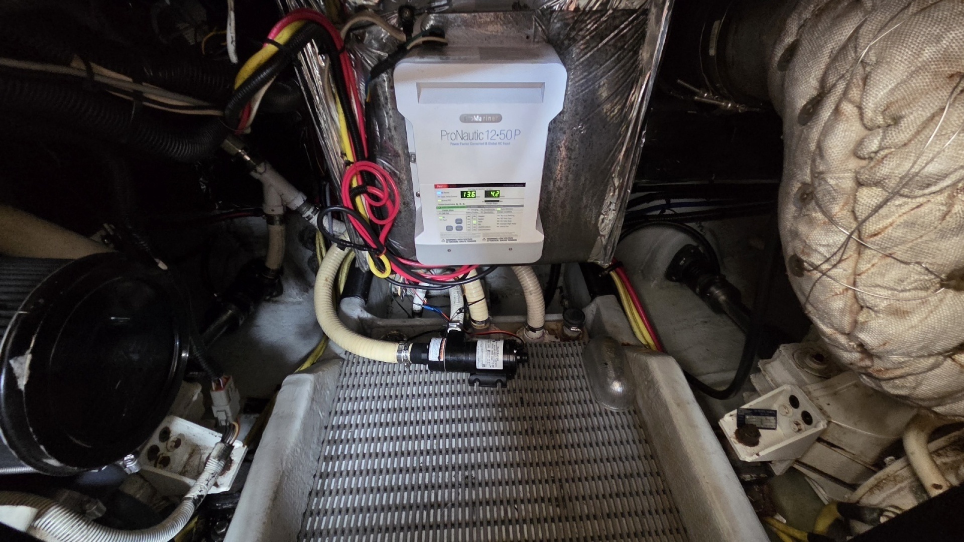 The engine room is well laid out with good accessibility, allowing for straightforward routine maintenance and service. Supporting systems—including fuel delivery, cooling, and exhaust—are properly installed with marine-grade components and show a clean, serviceable appearance.