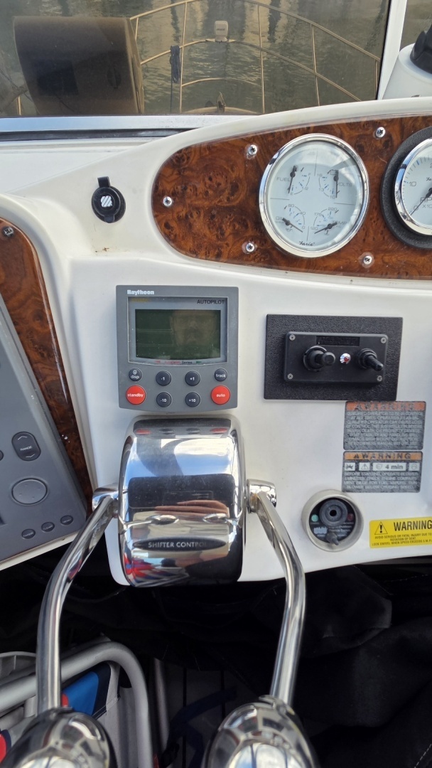 The helm layout is straightforward and easy to operate, with clear visibility and logical placement of controls and displays. This setup offers reliable navigation capability while remaining simple and serviceable for the next owner.
