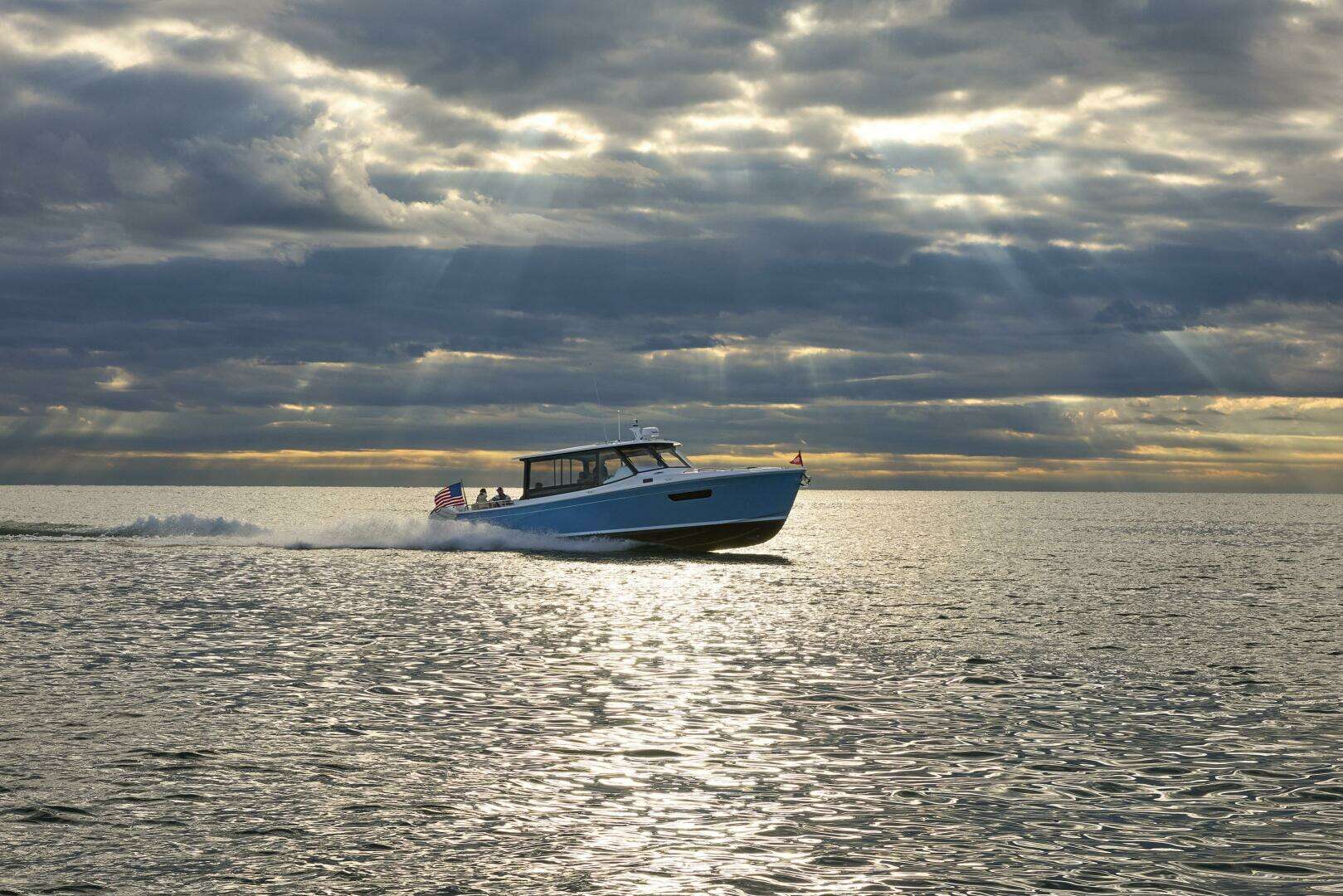 The MJM 47X stands out as a remarkable open-bow express day yacht with the added luxury of overnight accommodations. Owners rave about its unparalleled handling and smooth ride, dubbing it the "absolute best driving yacht" with effortless fingertip steering. Featuring four distinct social areas and a galley-up layout with the protection of the MJM indoor/outdoor pilothouse, the MJM 4 offers a versatile and efficient design. Below deck, you'll find a spacious v-berth, a yacht-sized head with a glass-enclosed shower, and a double berth amidships. Whether you're hosting a gathering or embarking on a weekend voyage, this all-weather/all-condition performance yacht ensures comfort and enjoyment for your loved ones.