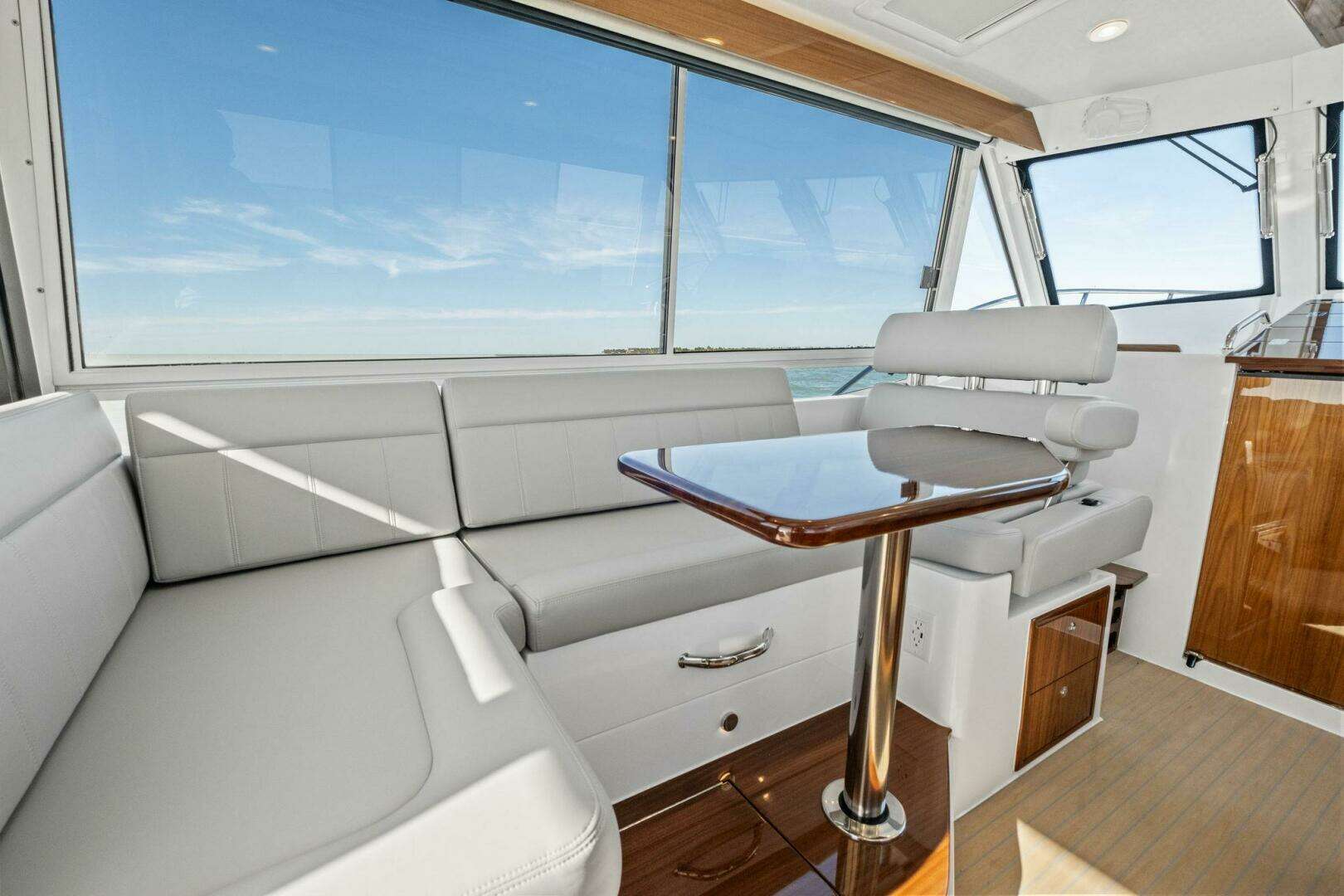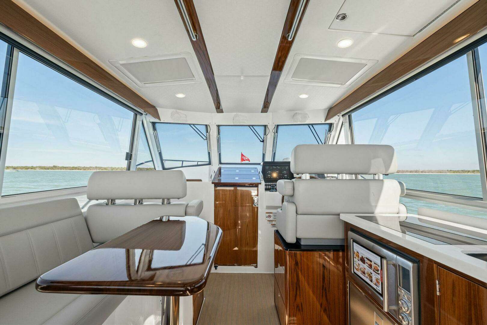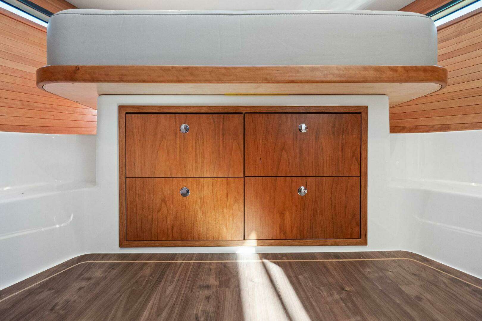 Rooted in classic Downeast style and elevated by modern luxury, this 2026 MJM 47R cruiser is designed to move effortlessly from daytime entertaining to unforgettable overnight escapes. Expansive social spaces invite relaxed gatherings at the dock or spirited cruising offshore, while refined details—from high-gloss teak accents and Ultraleather upholstery to a bright white pilothouse—create an atmosphere of timeless sophistication. Below deck, thoughtfully designed accommodations deliver the comforts of home, featuring a generous convertible berth, ample storage, and a fully equipped head with shower, allowing weekends on the water to extend with ease and comfort.