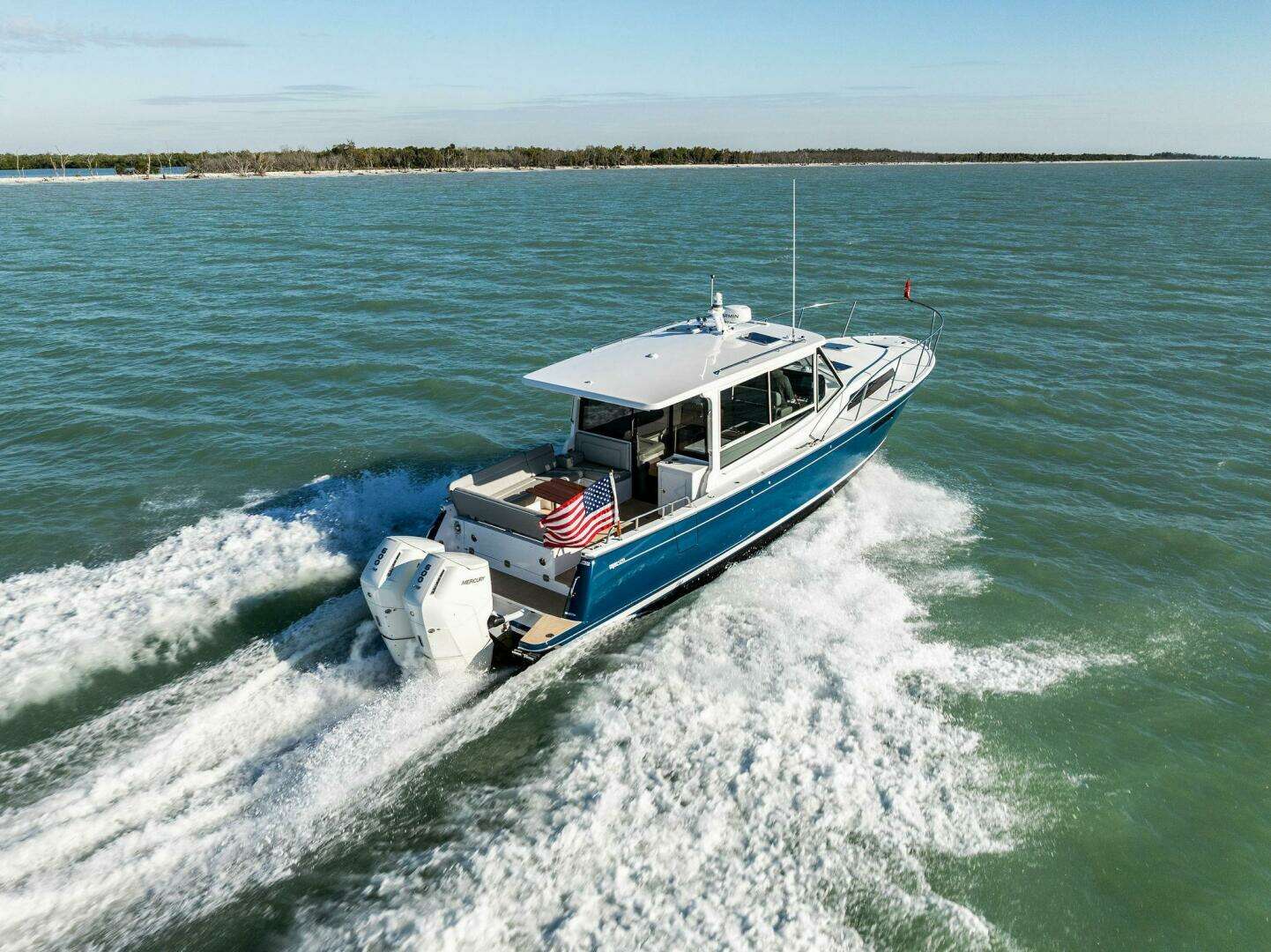 Engineered for best-in-class stability, handling, and ride, this yacht offers confidence-inspiring performance paired with intuitive technology, including dual Garmin navigation, joystick docking, and a glass helm. Every element has been carefully considered, balancing performance, comfort, and craftsmanship to create a yacht that feels equally at home hosting lively evenings, cruising with friends, or serving as a private retreat. This is Downeast luxury redefined—timeless, versatile, and purpose-built for life on the water.