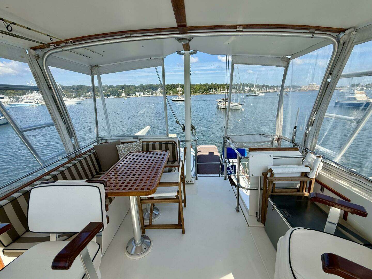 “DESTINY” is notable for her cruising comfort, featuring walk-around side decks accessed via salon sliding doors, and ample light and ventilation. The master stateroom offers direct aft cockpit access, and an internal companionway leads from the salon to the flybridge, providing 360-degree visibility and comfort.