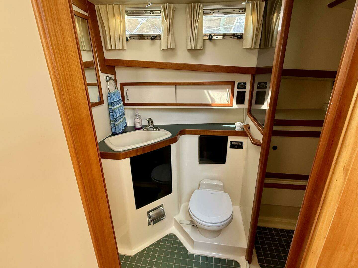 - Steps down to Galley and Guest Stateroom and Guest Bathroom