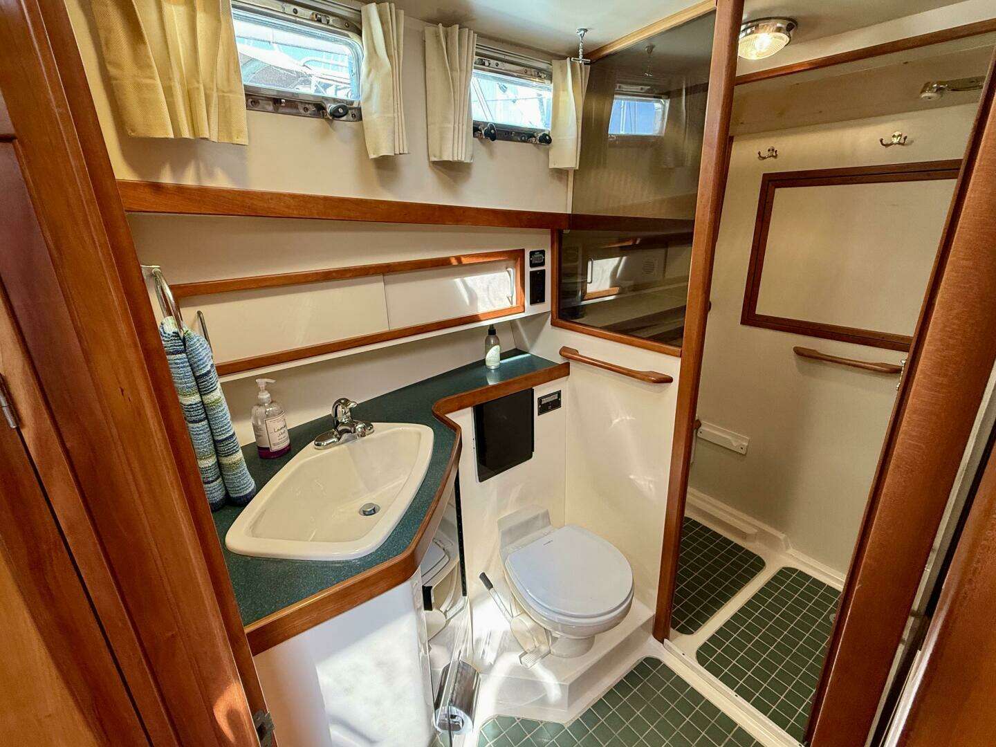 Below deck, "DESTINY" features a spacious and comfortable two-stateroom layout—ideal for longer voyages and guests. Her interior and systems reflect thoughtful use and careful ownership, with all maintenance professionally handled by a reputable yard. "DESTINY" has been thoughtfully fit out for distance cruising and life at anchor with upgraded dual voltage refrigeration.