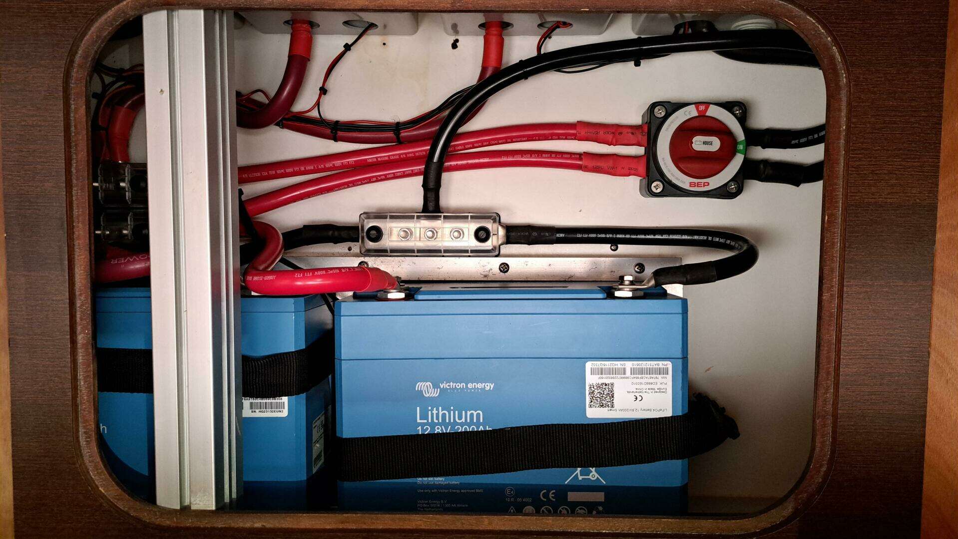- 12V service circuit with 2 x 220Ah Victron LiFePO4 batteries