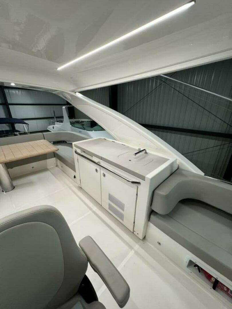 - AFT STORAGE COMPARTMENT WITH MOLDED ACCESS DOOR FROM THE PLATFORM, WIDE WINDOW, OPENABLE PORTHOLE AND OPEN-DOOR ALARM ON DASHBOARD, WITH POWER SOCKETS