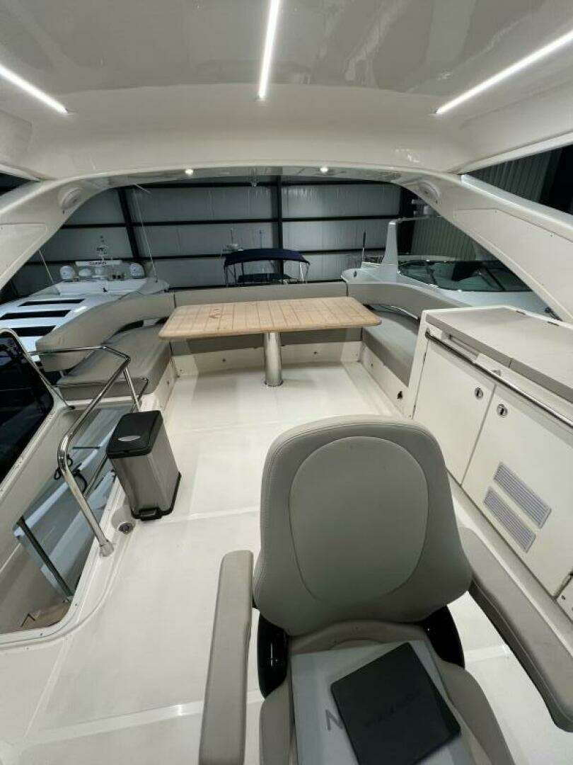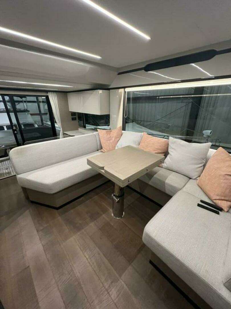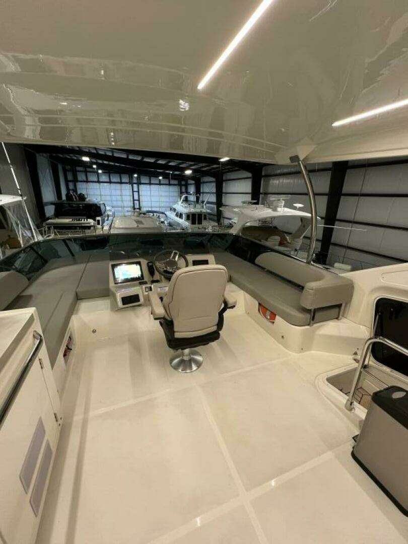 - HARD TOP MADE OF LIGHT GREY FIBERGLASS ON THE FLYBRIDGE WITH WHITE FIBERGLASS CEILING AND DIMMABLE LED STRIPE CEILING LIGHTS