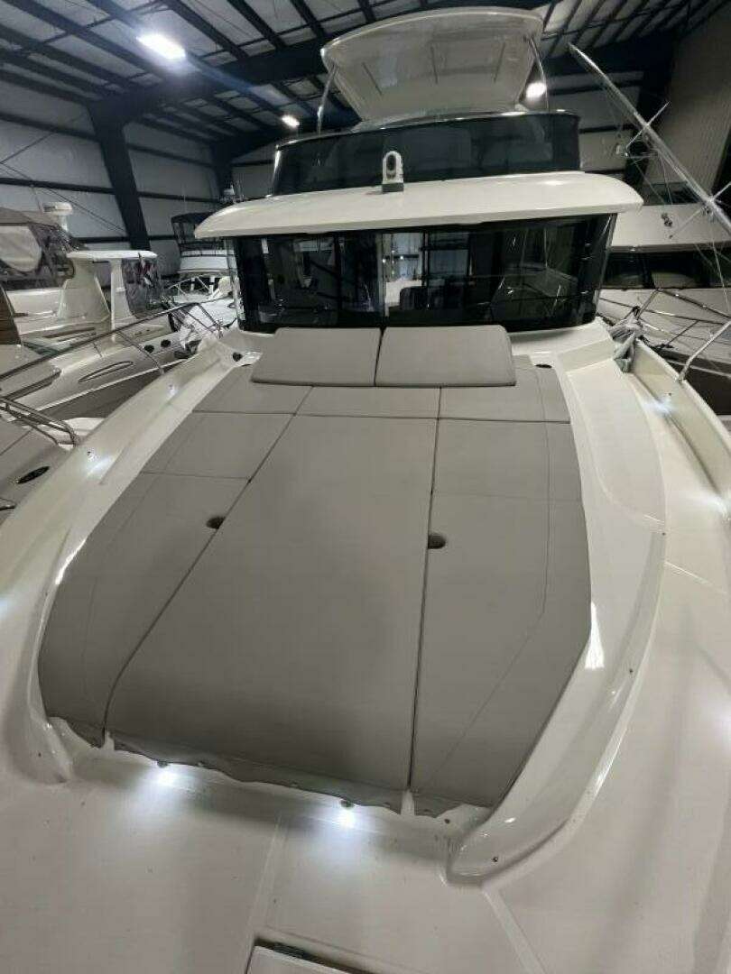 - ECRU COLOR BOW SUNBATHING CUSHIONS IN QUICK DRAINAGE FOAM, PEARL GREY COVER AND LOUDSPEAKERS WITH FIXED REMOTE CONTROL AND LOCAL VOLUME ADJUSTMENT FOR SOUND SYSTEM CONNECTED WITH RADIO IN FLYBRIDGE