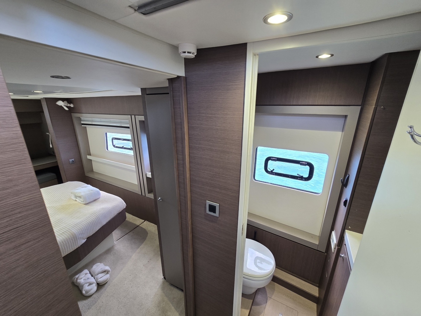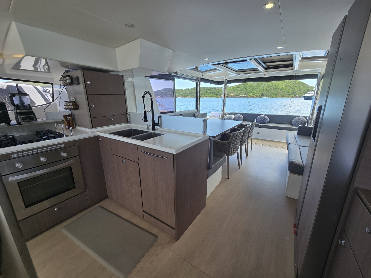 She delivers Bali’s signature seamless indoor-outdoor living, creating a large, open-plan social space rarely matched in this size range. Designed for serious cruising, she offers strong off-grid capability with watermaker, Onan 11kw generator, 900w of Solar, and air conditioning throughout the cabins.