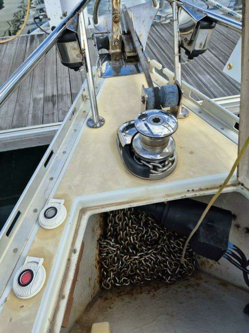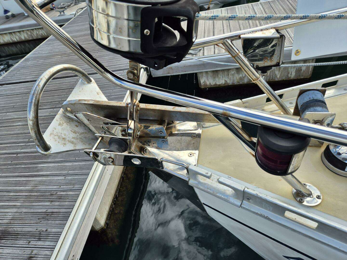 The rig was completely lost and the pulpit bent beyond repair. Some smaller items such as bent stanchions were repaired and the life lines were replaced. The previous owner was a metal fabricator by trade and did an amazing job on the new bow pulpit & anchor roller. He also bought a Bavaria of similar size and the rig salvaged and used as a replacement. This rig is a Selden, about 15 years newer than the original and similar size.