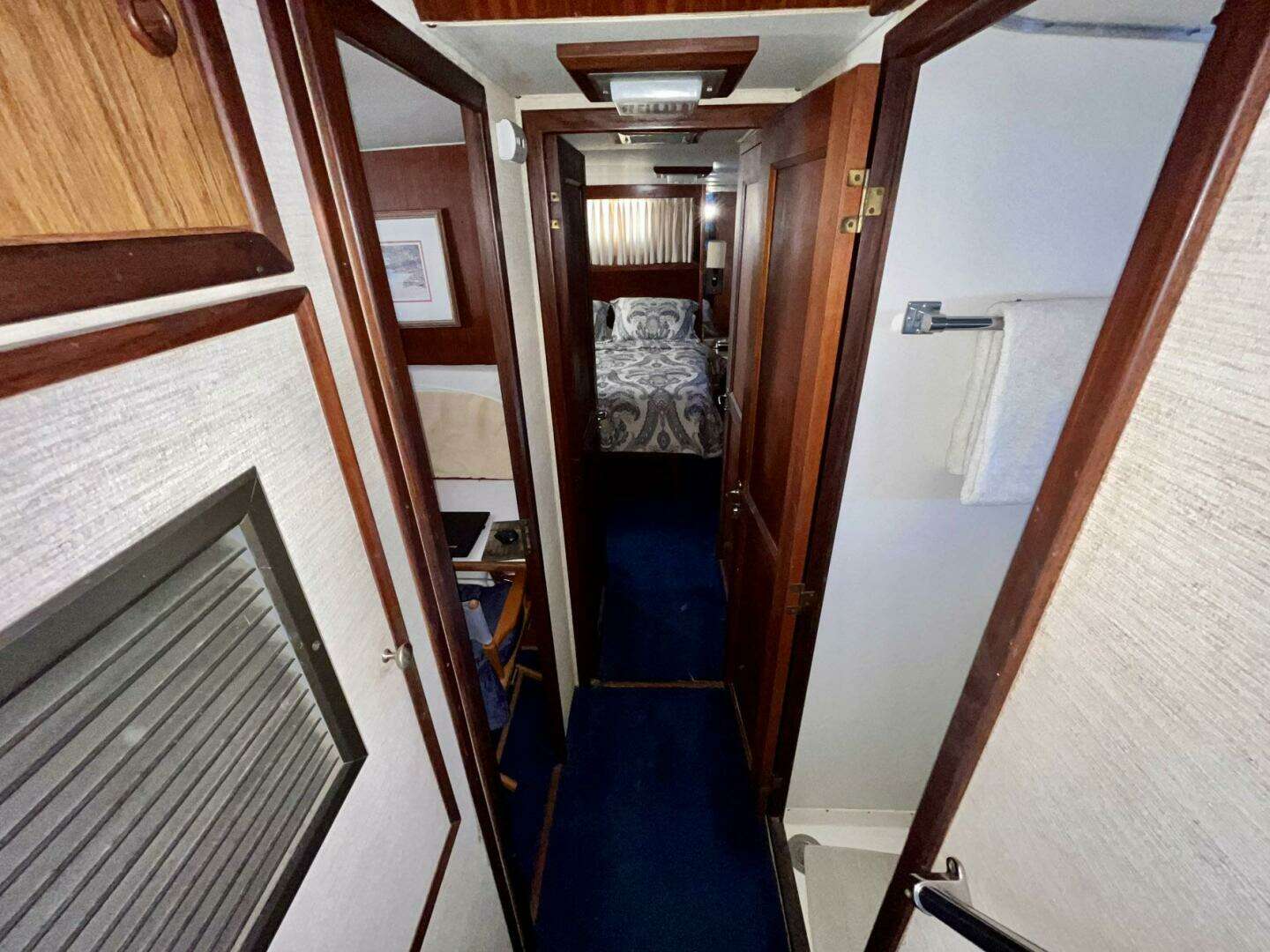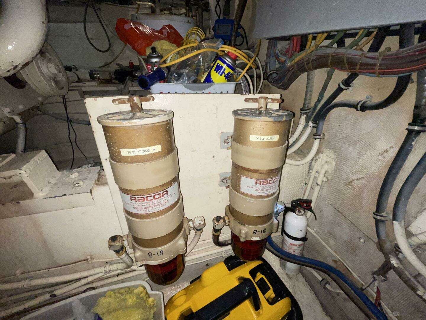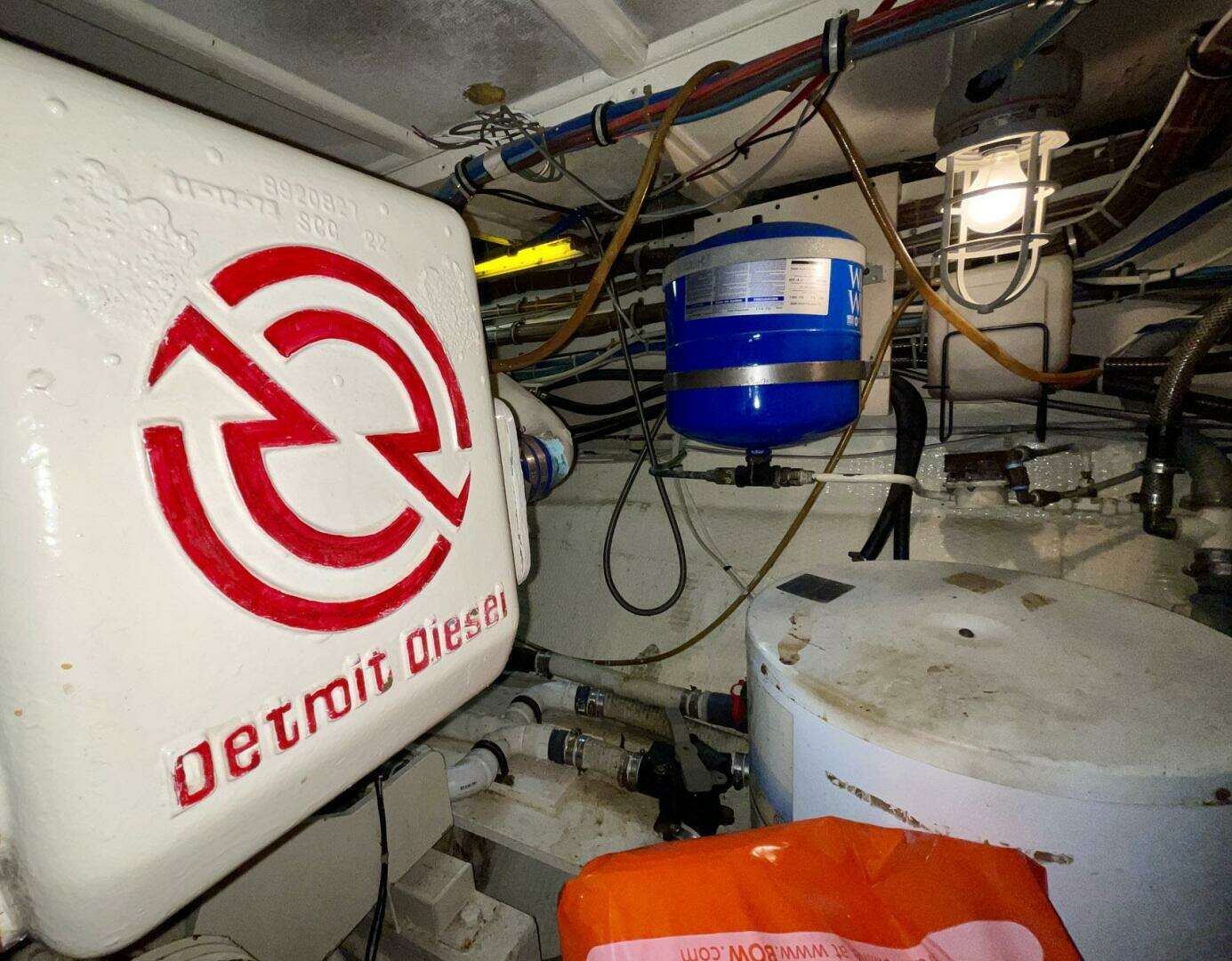 Whether your cruising grounds take you north to colder climates or you stay tropical you’ll find comfort with 4 zone reverse cycle FCF heat and air conditioning. Her Detroit 6v92’s can sip fuel at trawler speeds or you can push the throttles forward and get to your destination to catch the sunset with ease. One of “Rubber Ducky’s” greatest features is its new Phazor 12.5kw generator nestled inside a sound box in the stand up engine room. Fresh batteries ensure confident starting and are charged by a new Victron 50 amp charger. The engine room includes a fire suppression system.