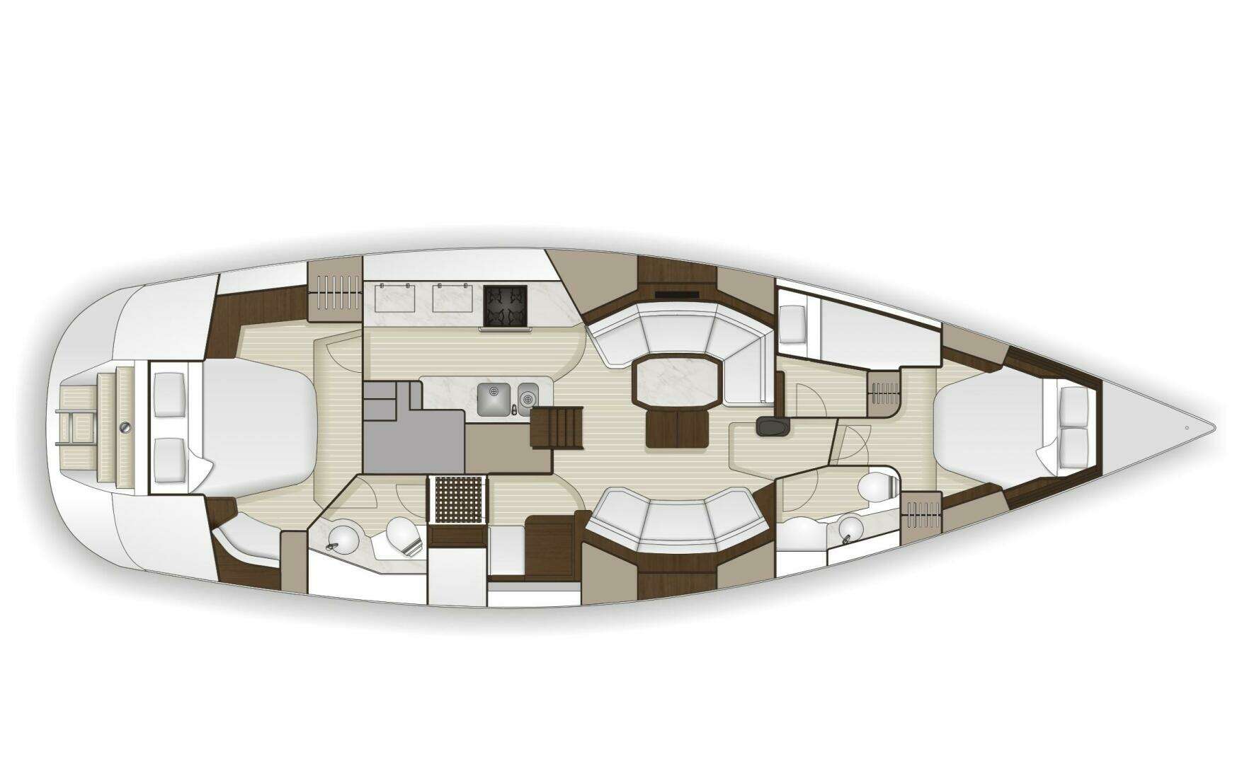 - Teak cabin sole with marine-grade plywood subfloor (end grains sealed with epoxy)