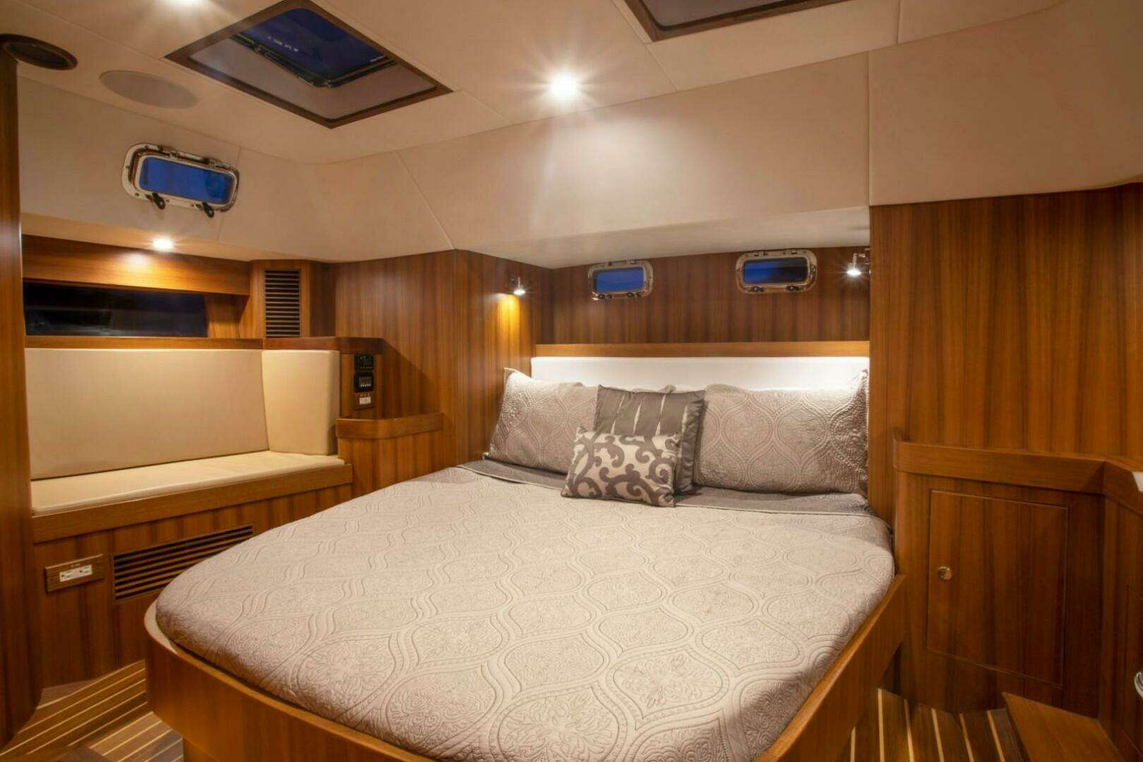 - Aft Master Stateroom: centerline queen berth with private head (separate stall shower and second passageway)