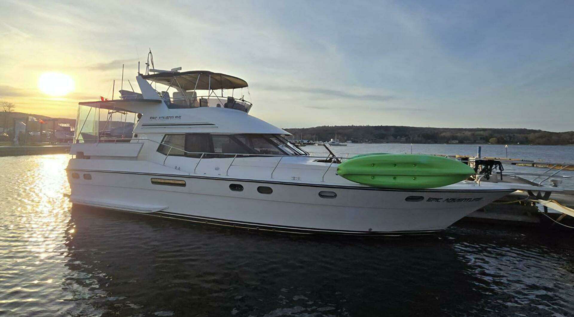 Epic Adventure is a modern European design of fine quality built by the Neptunus Shipyard B.V. in Holland. The Neptunus yard builds a full line of boats which are distributed throughout Europe and North America. Dutch builders are well known for their quality and attention to detail, and, this vessel lives up to that reputation. Her interior is done in lacquered ash yielding a light peach finish. The cabinetry and hardware are all of high quality as are the fixtures, appliances, and other equipment, she was built for United States use and her electrical system and other equipment are all "U.S. Type".