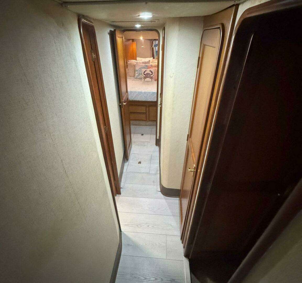 - You will find the Master Stateroom at the bottom of the stairs, along the port side of the Hallway