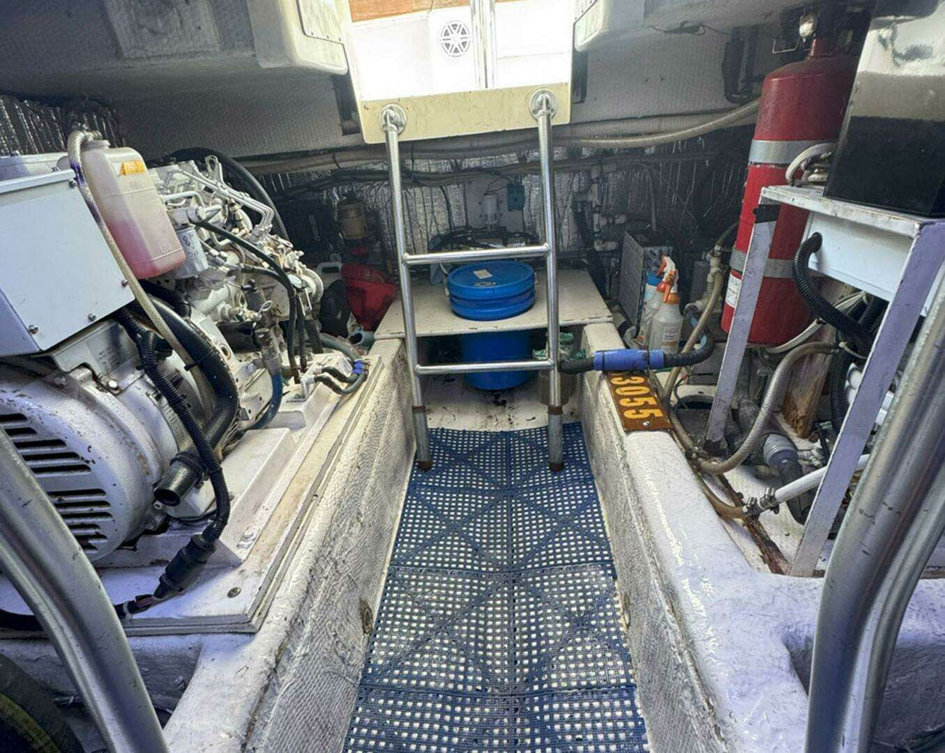 Enter through a 2-Piece hatch in the cockpit; the engine room is easy to access, Very Clean, and well-lit.